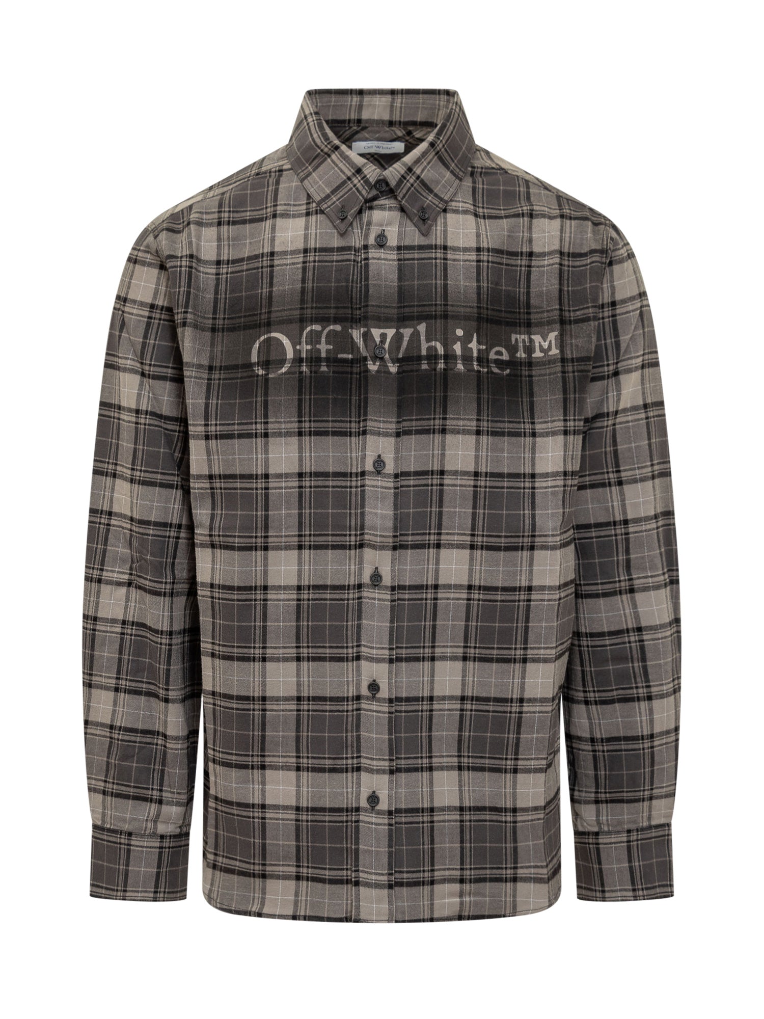 Camicia Off-White in cotone a quadri con logo stampato sul petto e chiusura a bottoni.
