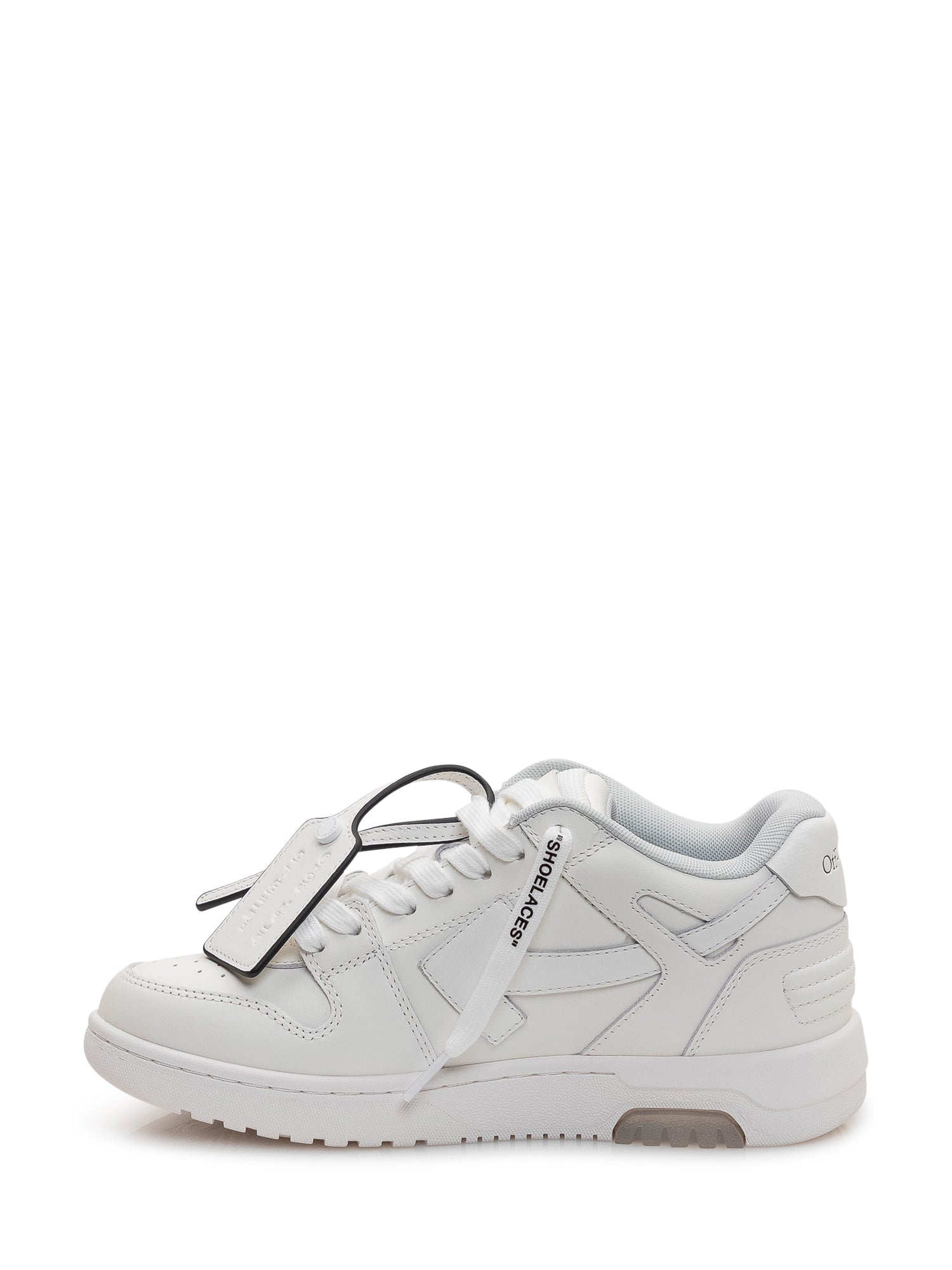 Sneaker dal design urbano con tomaia liscia, dettagli grafici a contrasto e lacci classici con tag decorativo.