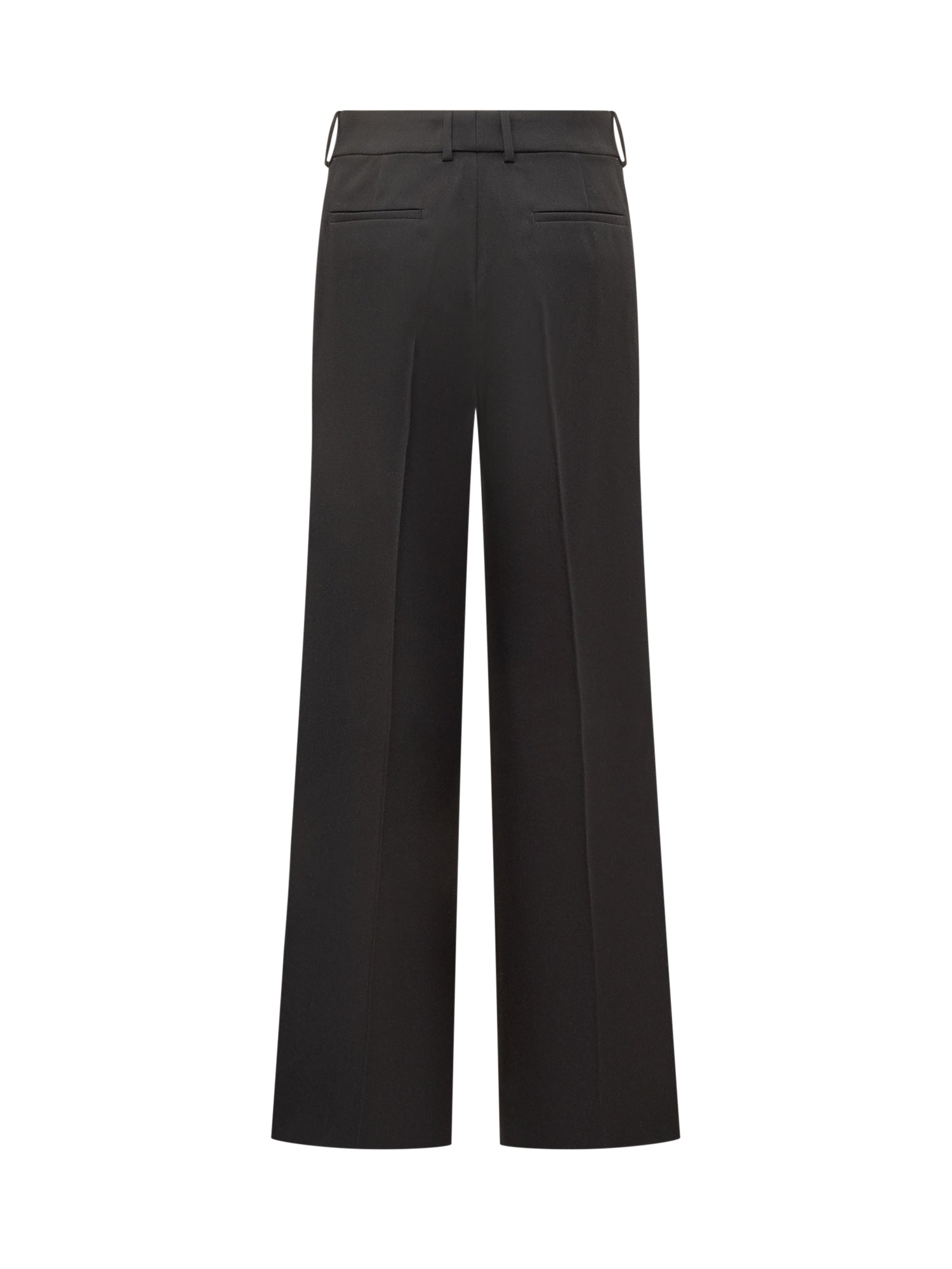 Pantaloni Off-White neri a gamba larga con piega frontale e logo stampato laterale.