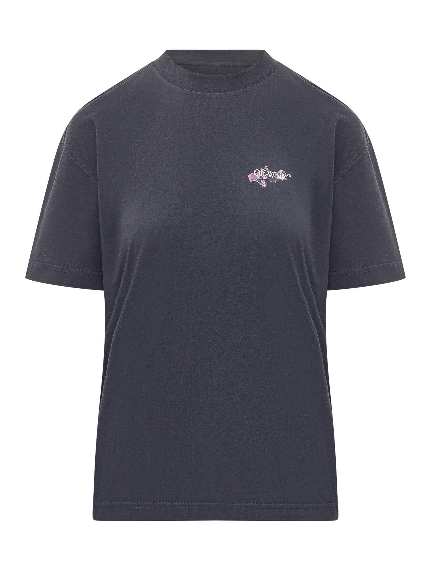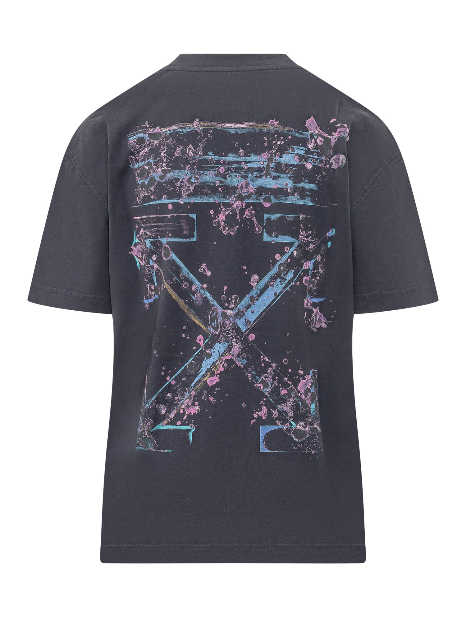 T-shirt in cotone a maniche corte con logo stampato sul petto e maxi grafica acquarello sul retro. Vestibilità comoda, girocollo e finiture essenziali.
