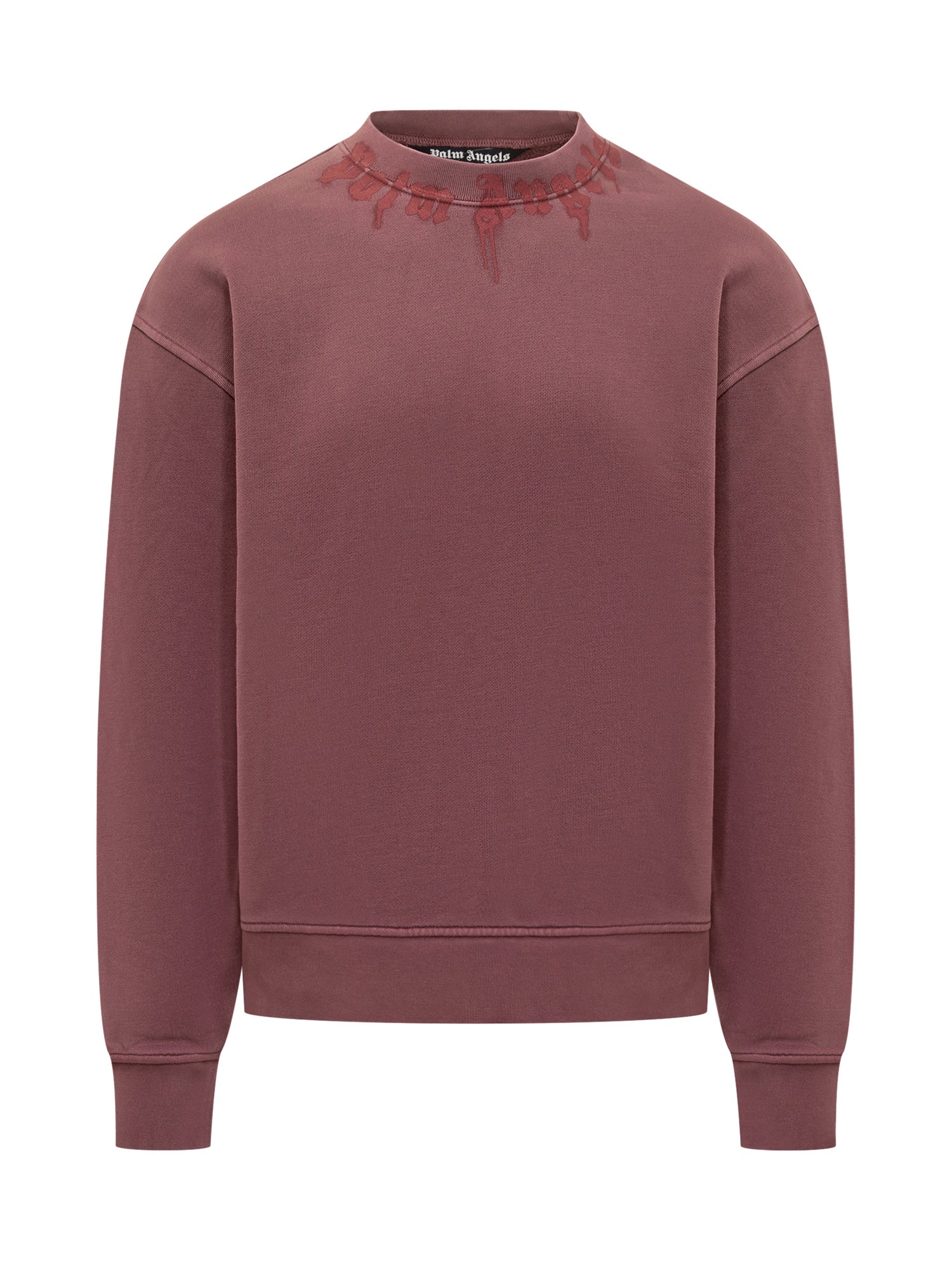Felpa Palm Angels in cotone bordeaux con logo spray effetto scolorito sul girocollo. Taglio regular con bordi a costine.