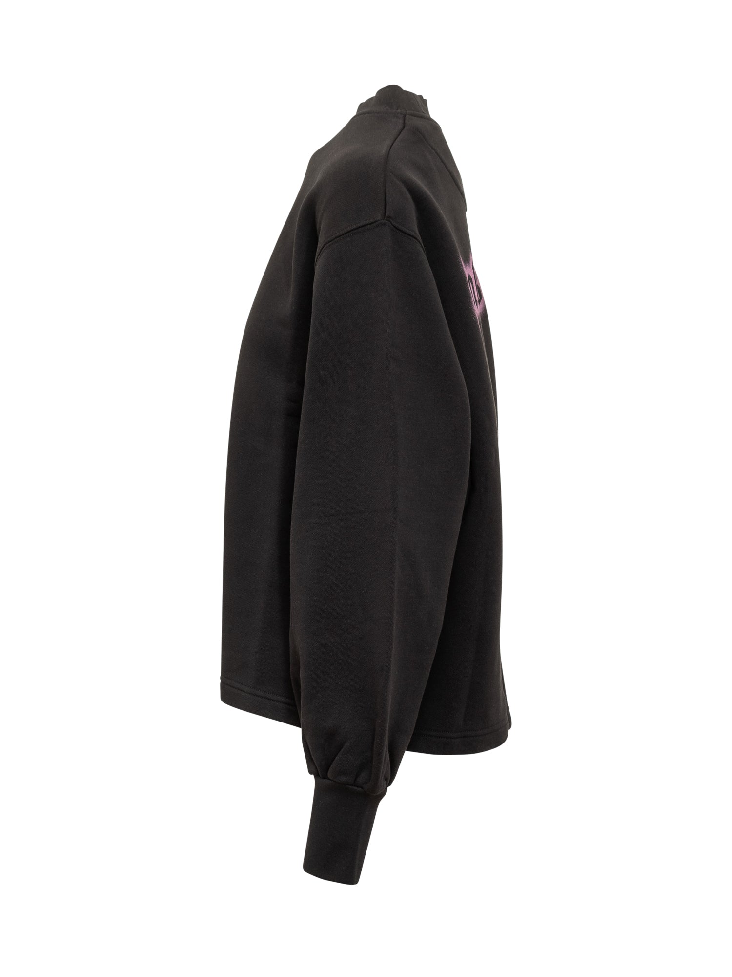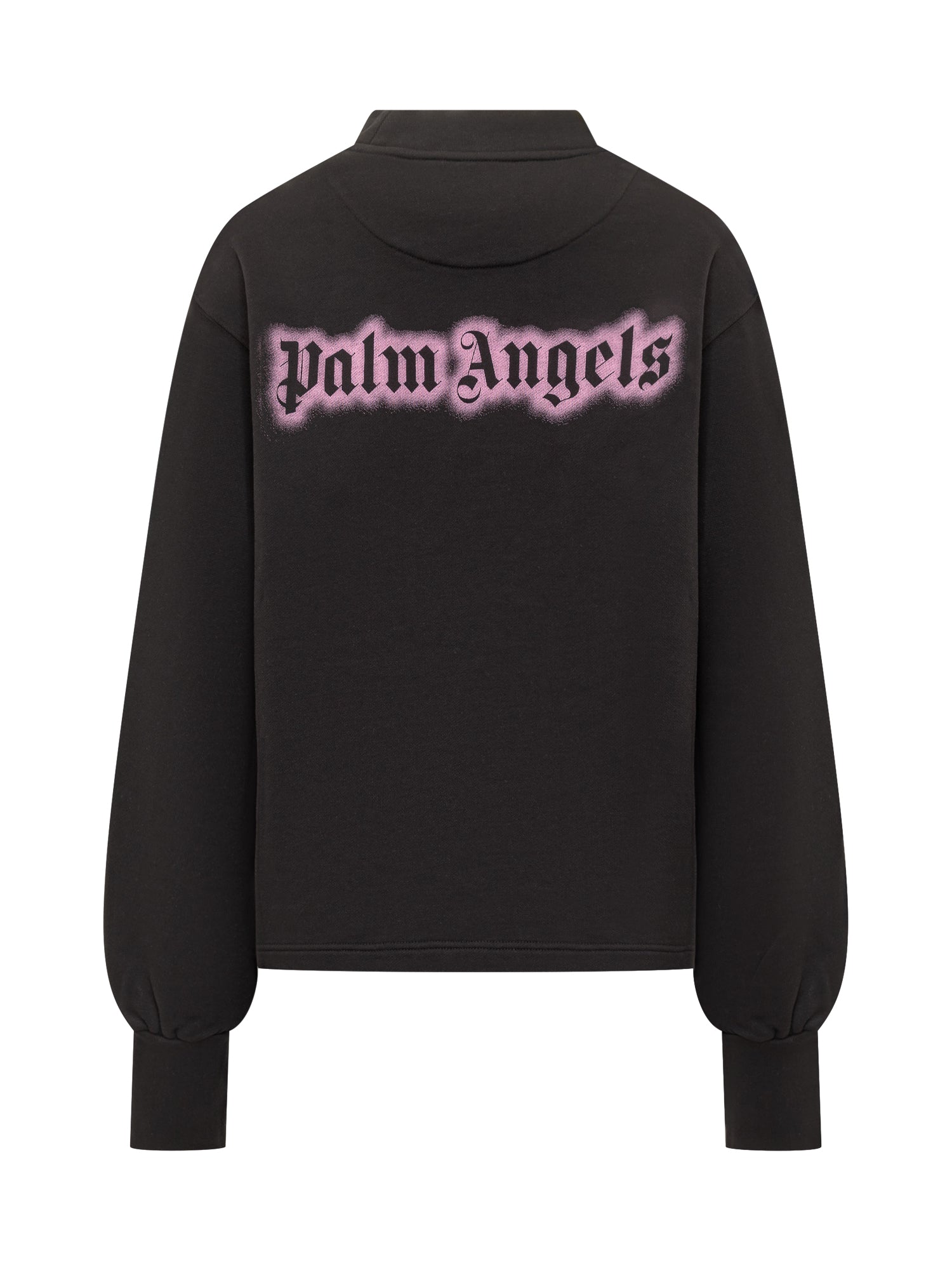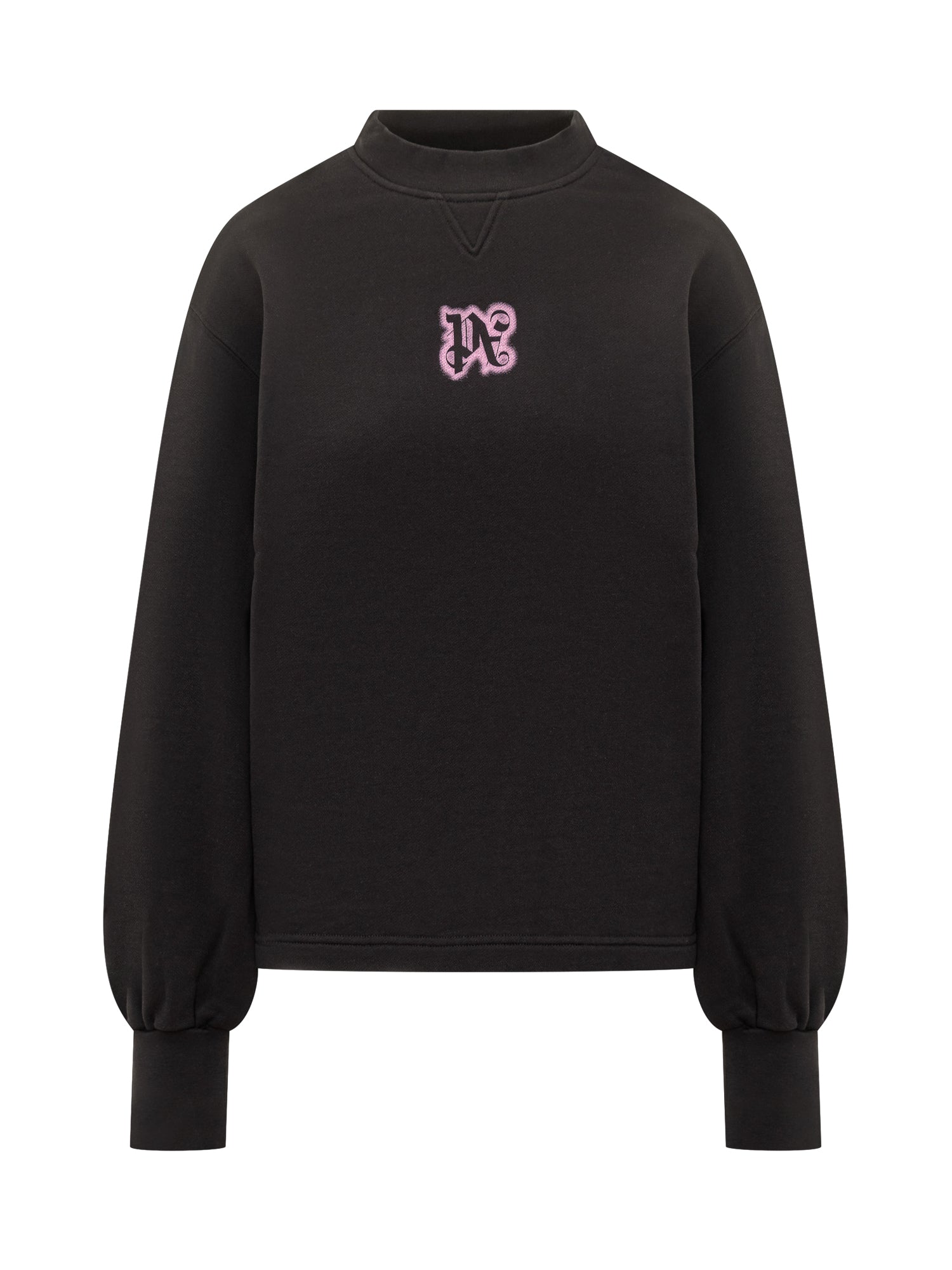 Felpa Palm Angels in cotone nero con logo ricamato rosa sul petto. Modello con collo alto e maniche lunghe.