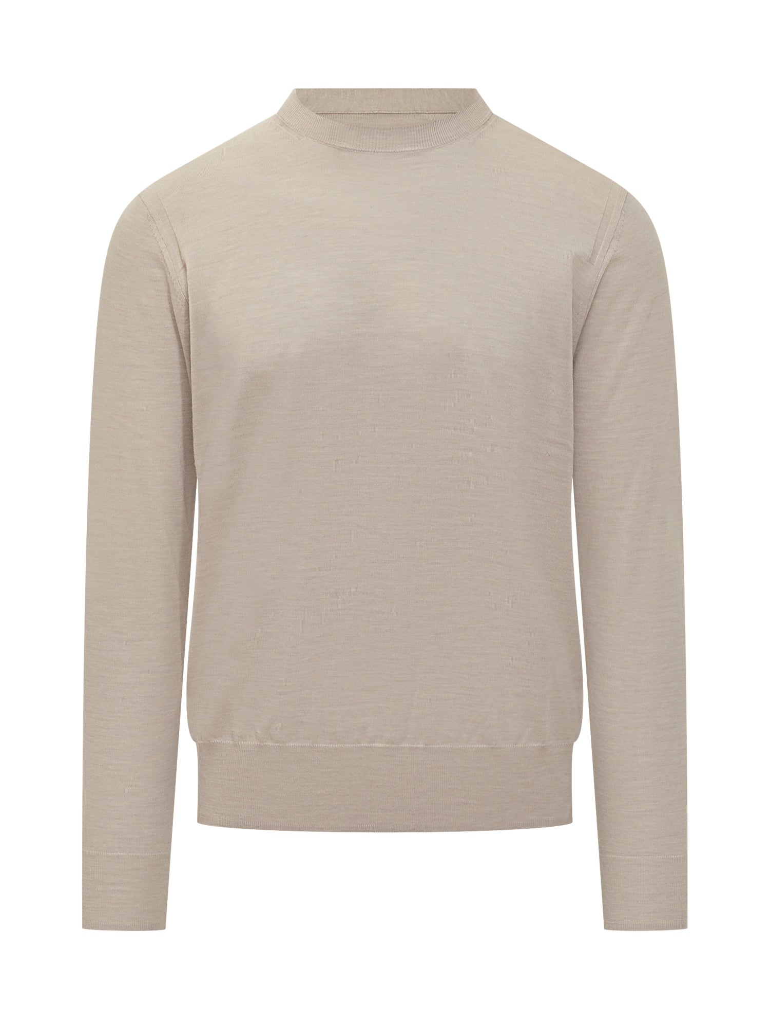 Maglia uomo girocollo a manica lunga in lana extrafine beige, firmata Paolo Pecora.