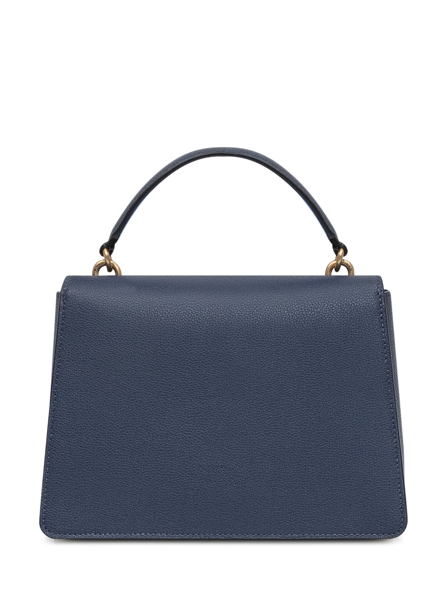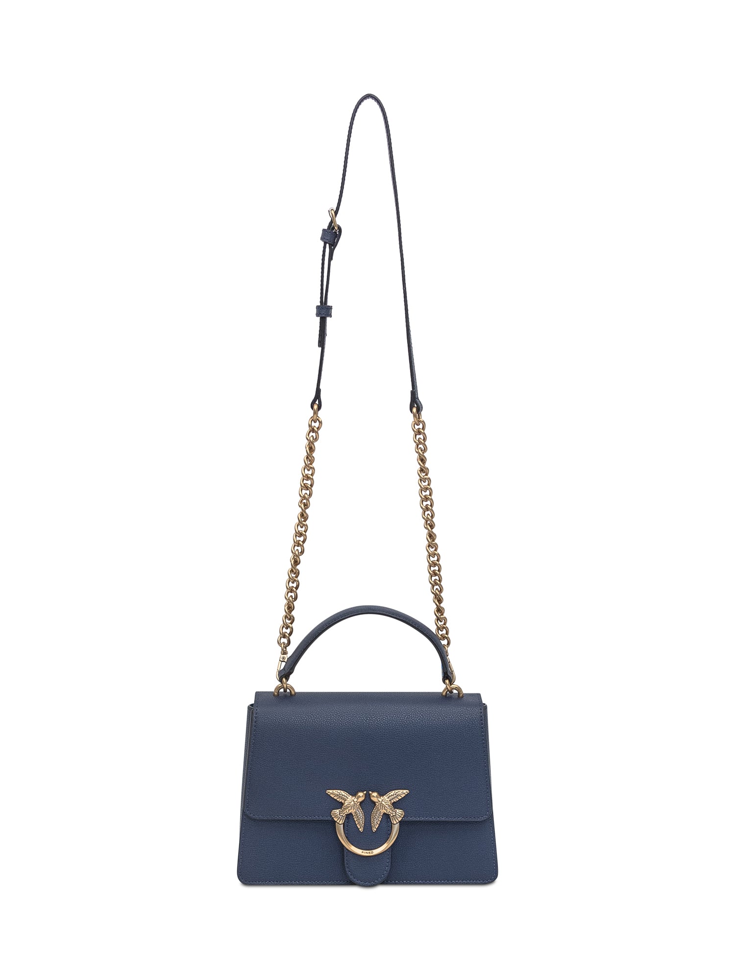 Borsa a mano Pinko in pelle blu con iconica chiusura Love Birds dorata.