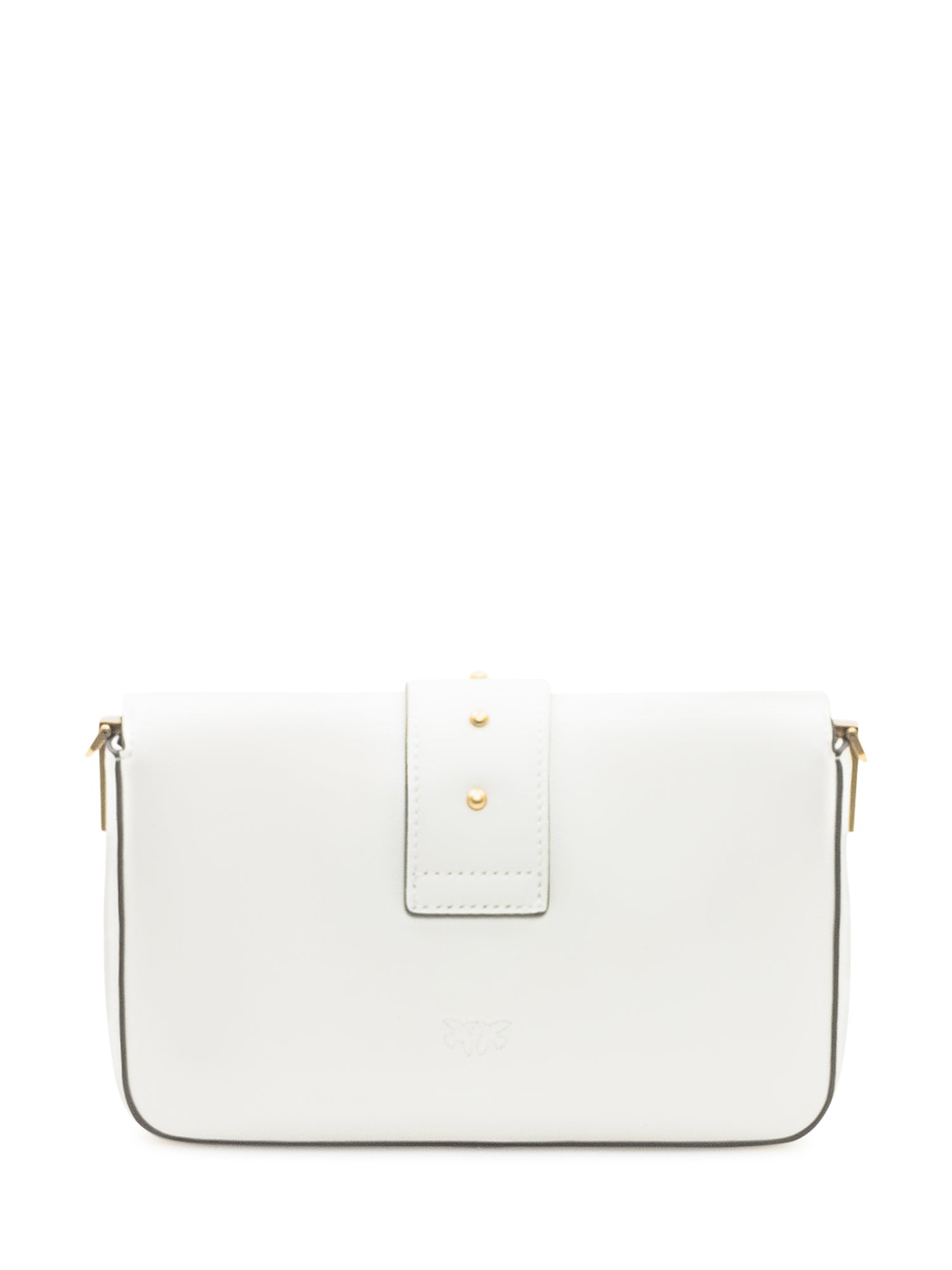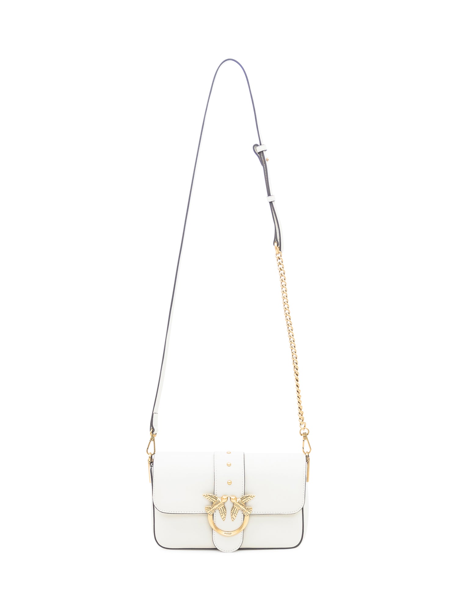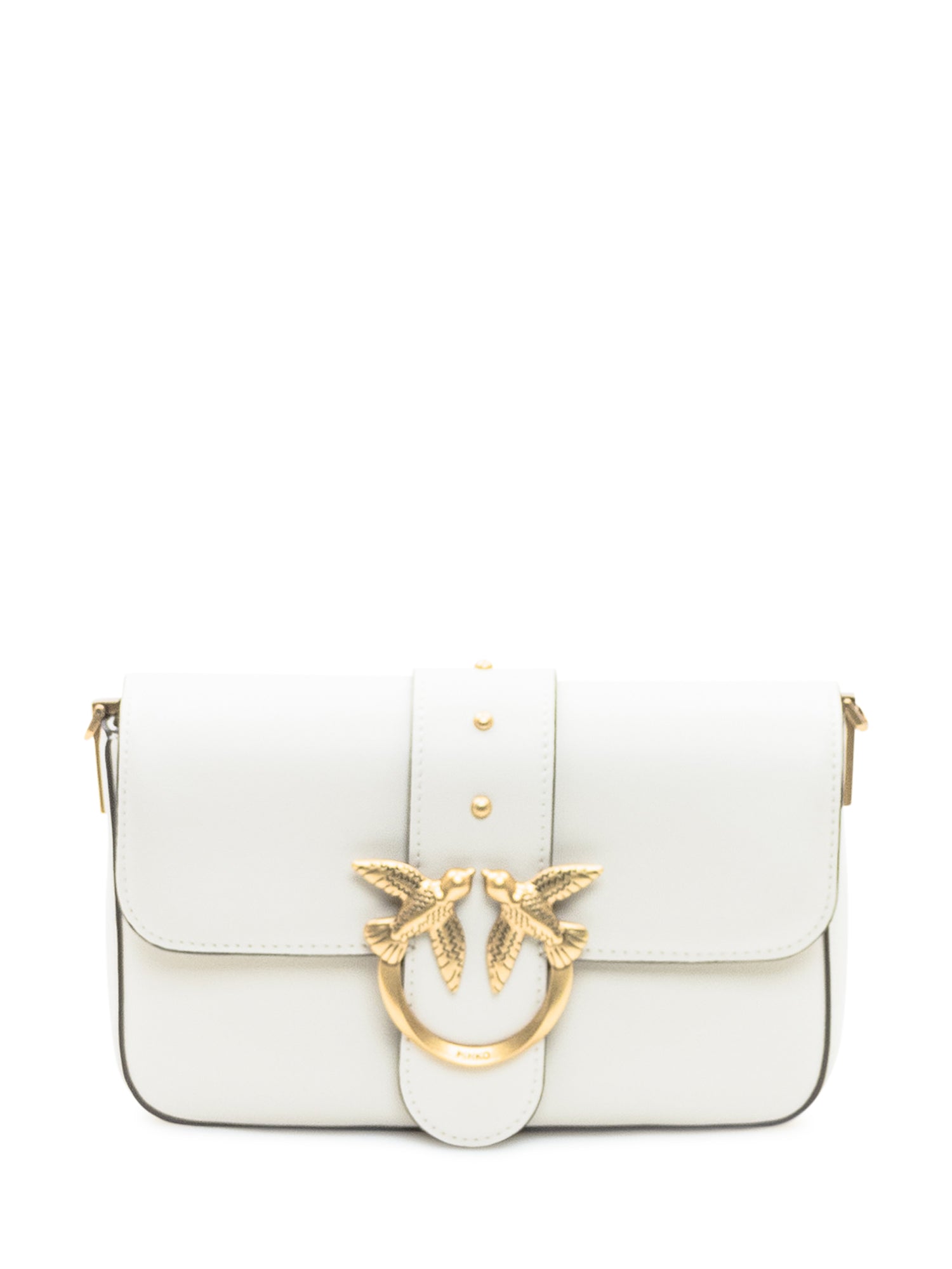 Borsa Pinko Love One Mini in pelle bianca con iconica fibbia Love Birds in metallo dorato.