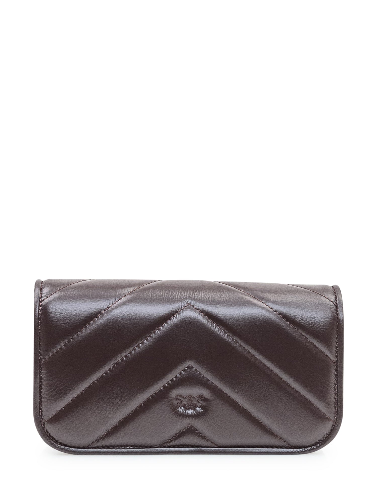 Borsa Pinko Love Box Baguette in pelle marrone trapuntata con iconica fibbia Love Birds dorata.