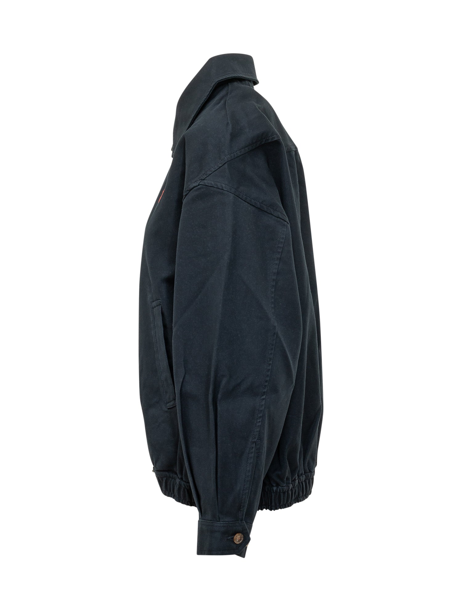 Giacca bomber in tessuto con chiusura frontale a zip, colletto classico e tasche laterali. Linea regolare.