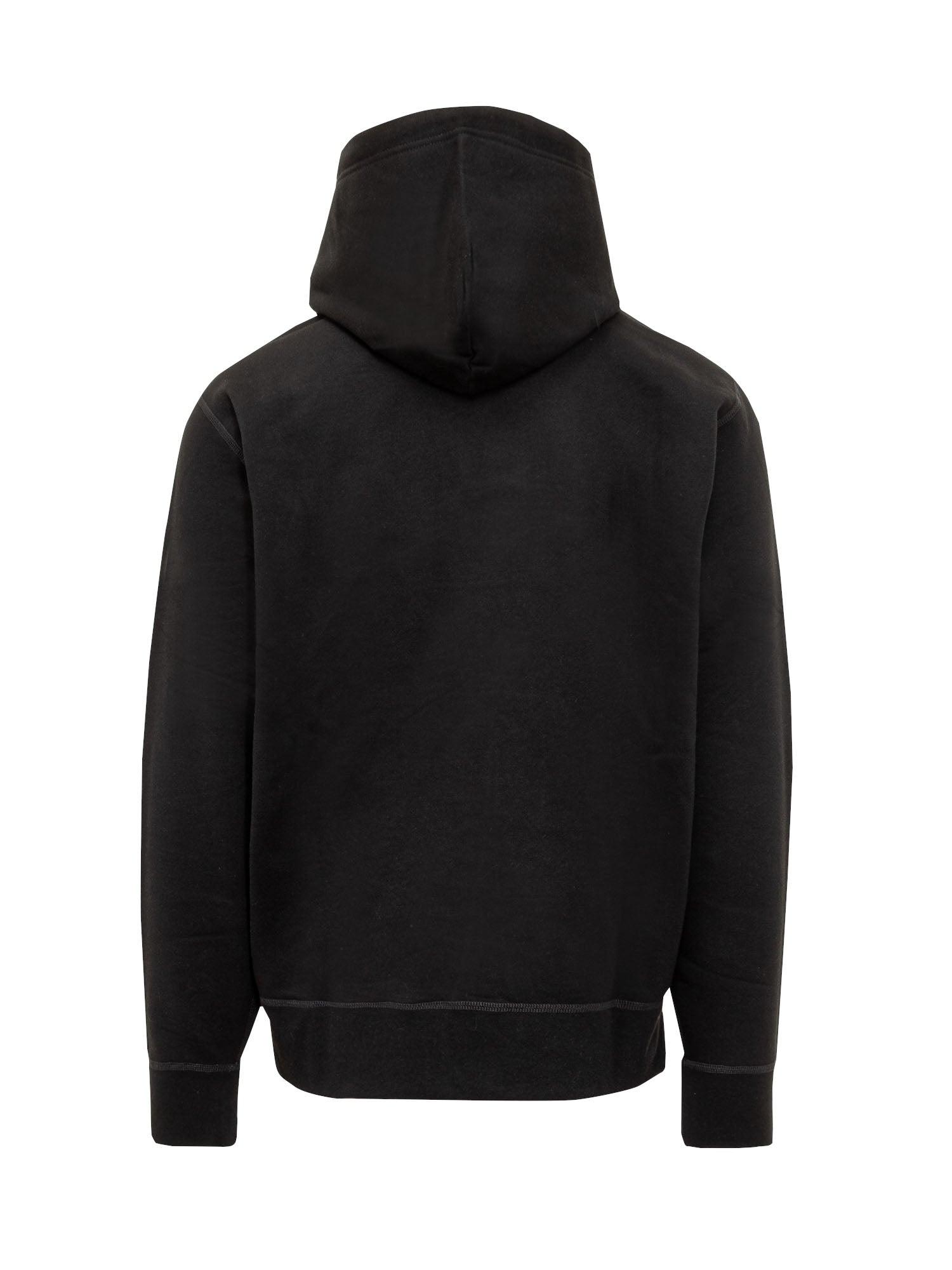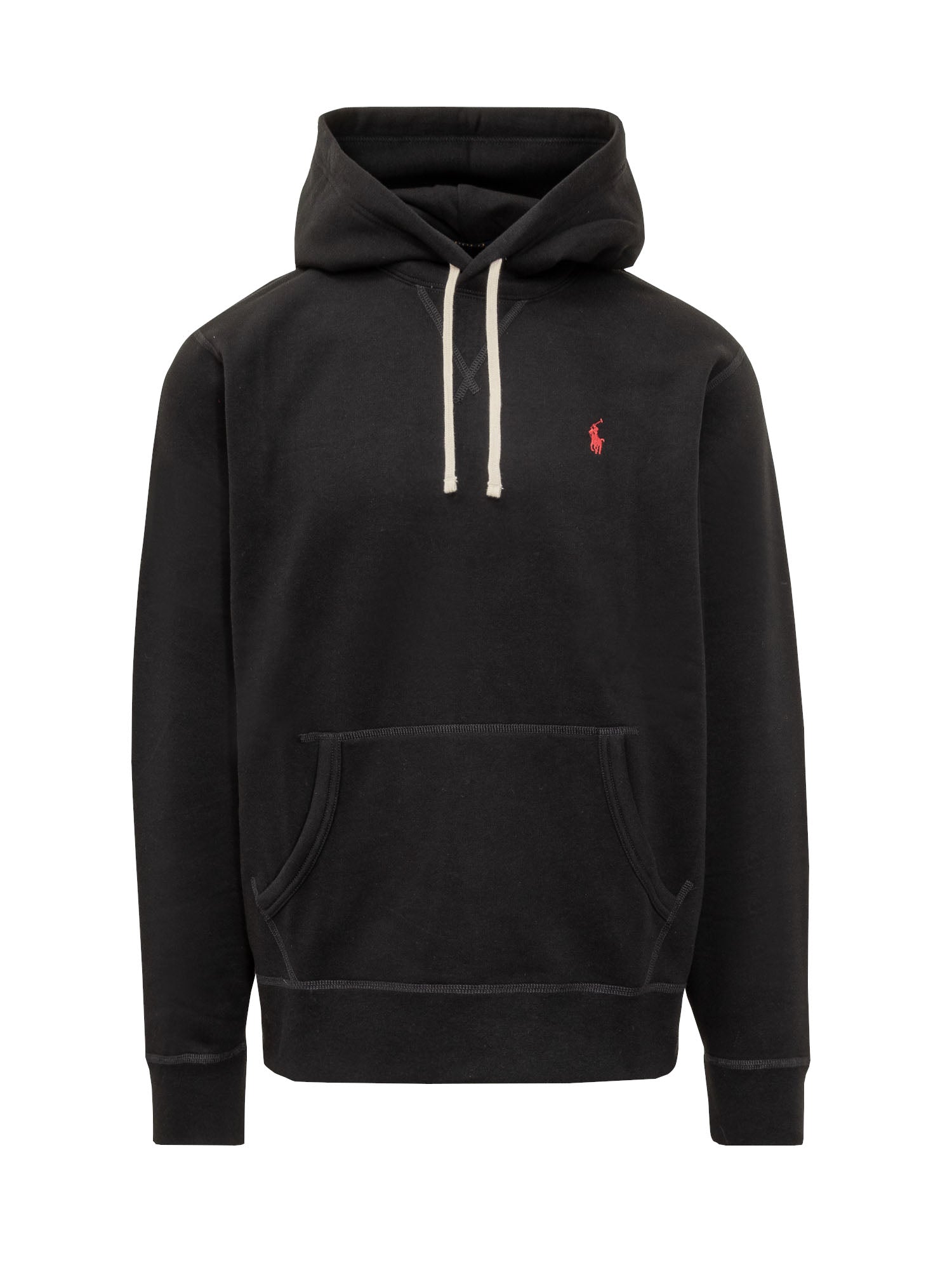 Felpa in cotone con cappuccio regolabile, tasca a marsupio e ricamo sul petto. Morbida e confortevole.