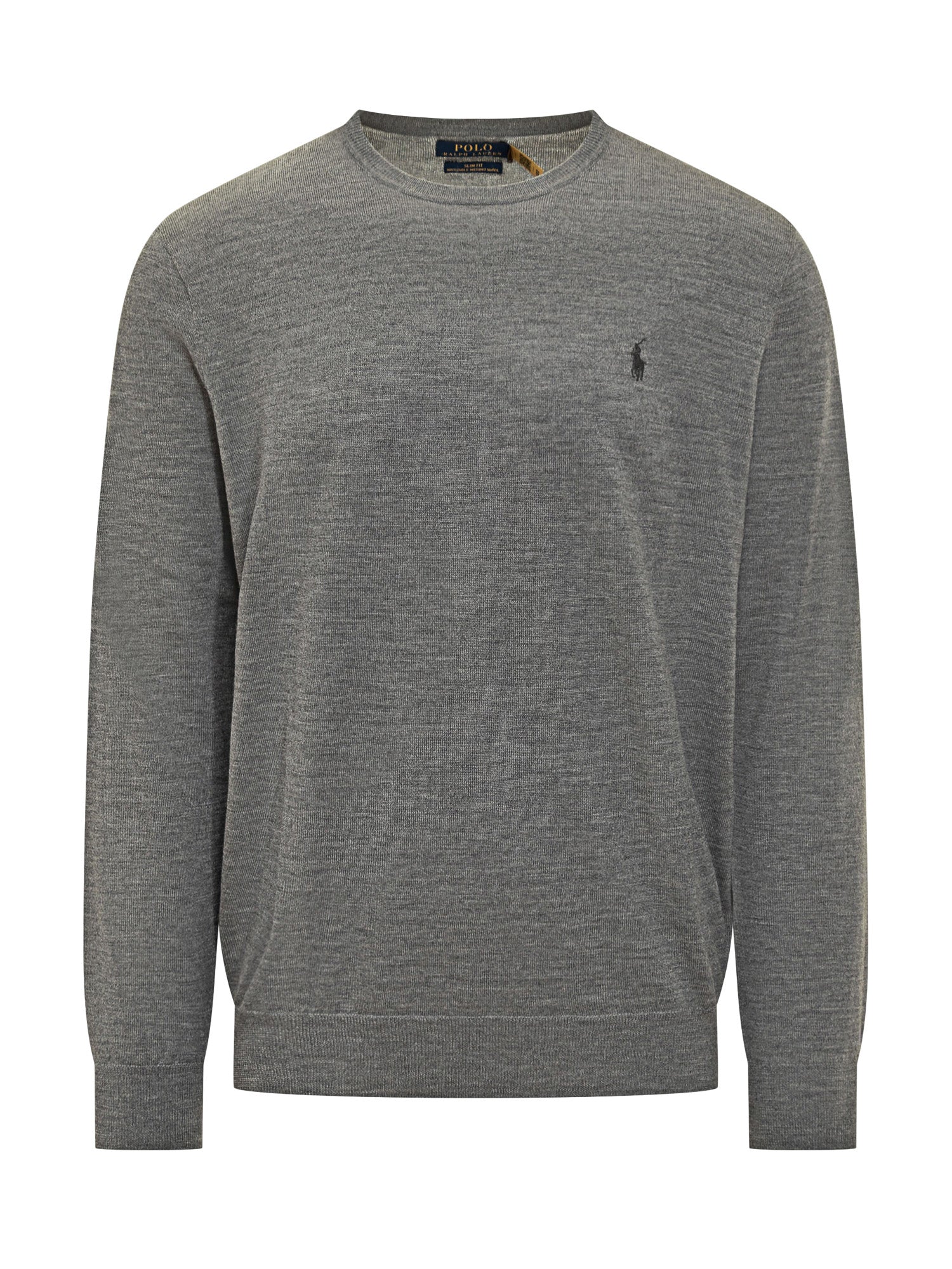 Maglia a maniche lunghe in cotone grigio melange con collo girocollo e logo Polo Ralph Lauren ricamato. Eleganza casual per ogni occasione.