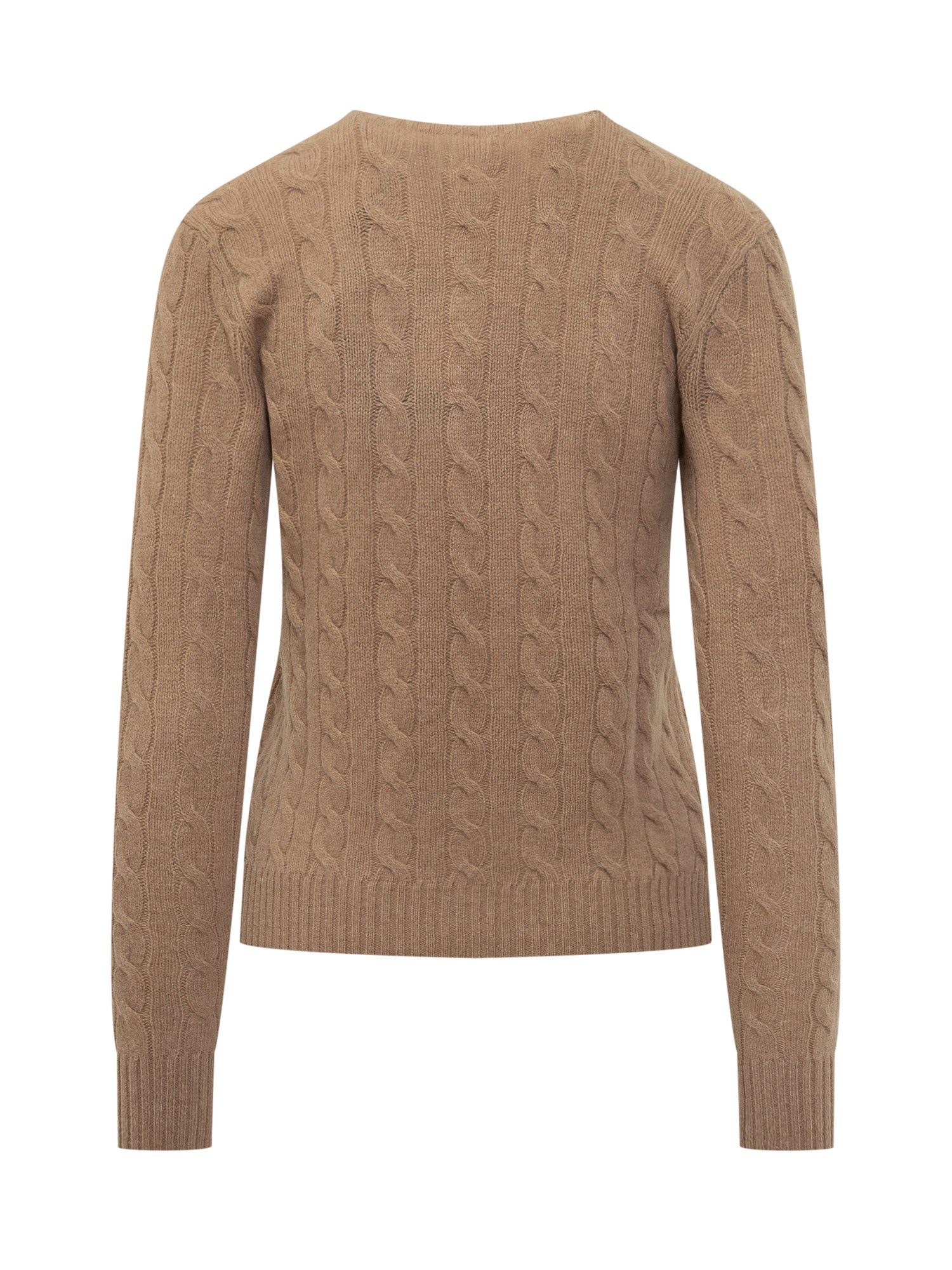 Maglione Polo Ralph Lauren in lana beige con lavorazione a treccia e logo ricamato sul petto.