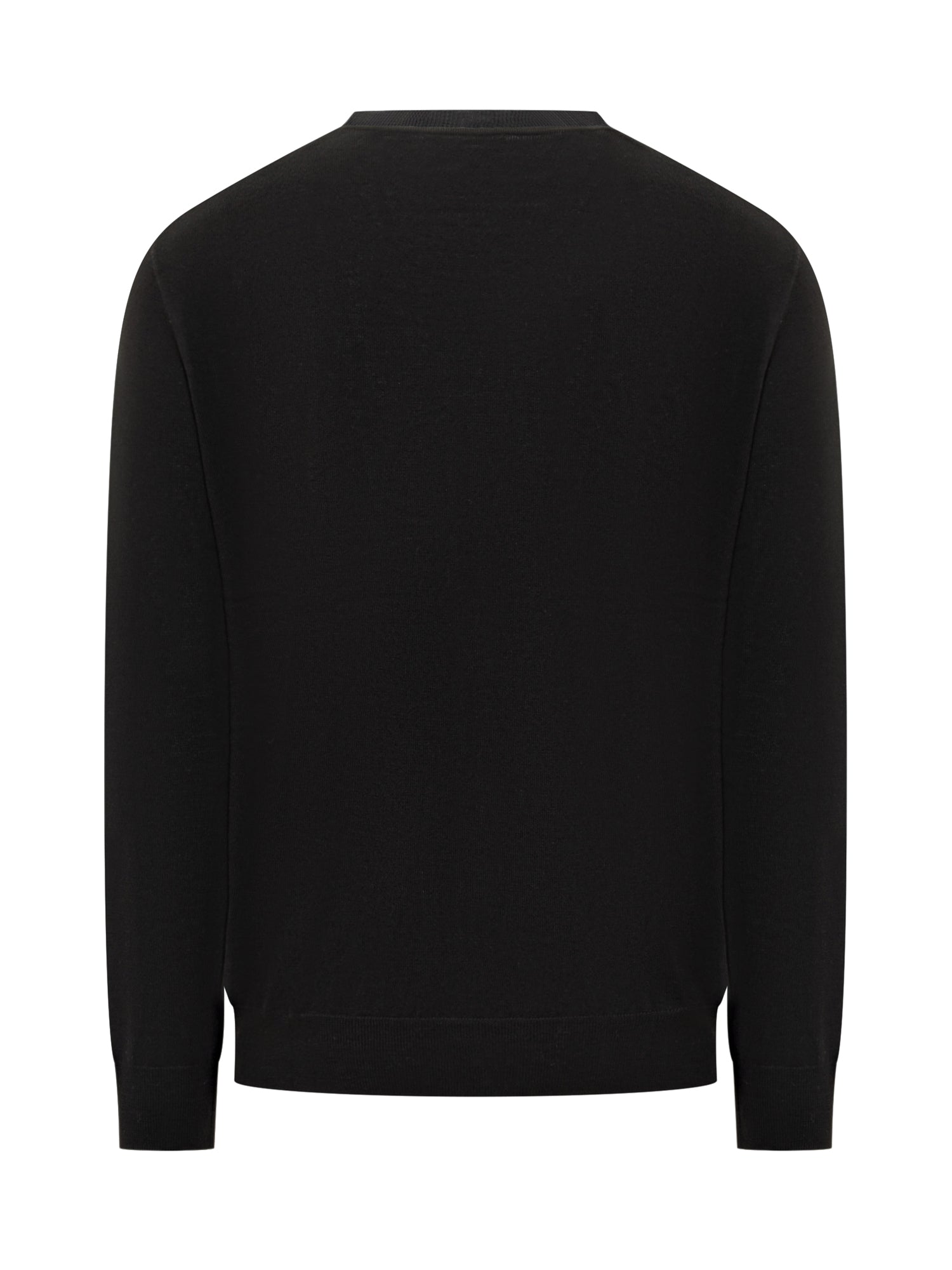 Maglione Polo Ralph Lauren in lana vergine nera, girocollo con logo pony tono su tono ricamato sul petto.