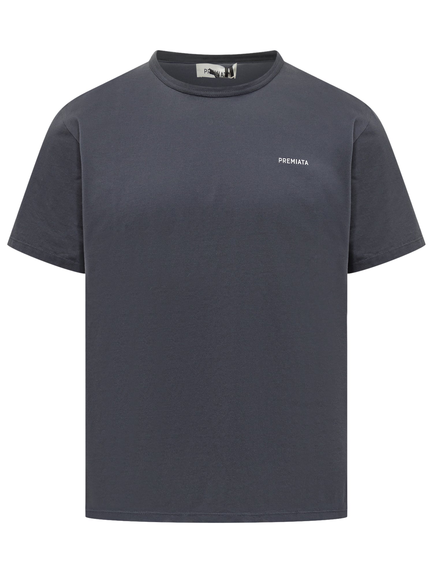 T-shirt Premiata in morbido cotone blu con logo stampato sul petto. Linea essenziale e vestibilità regolare.