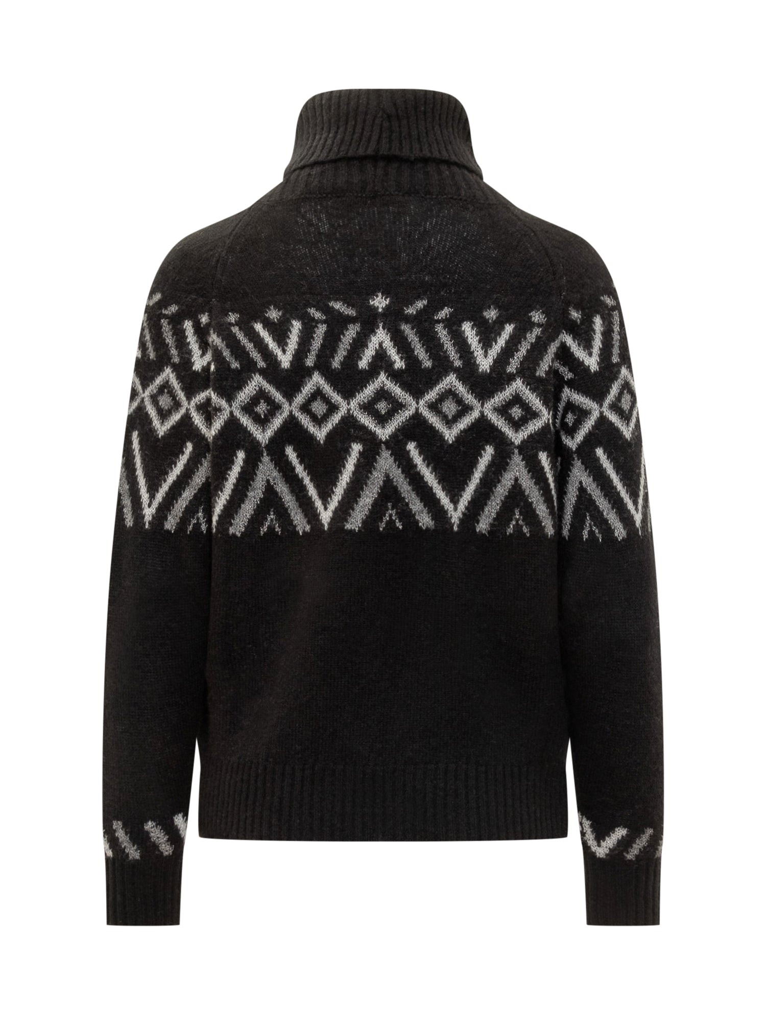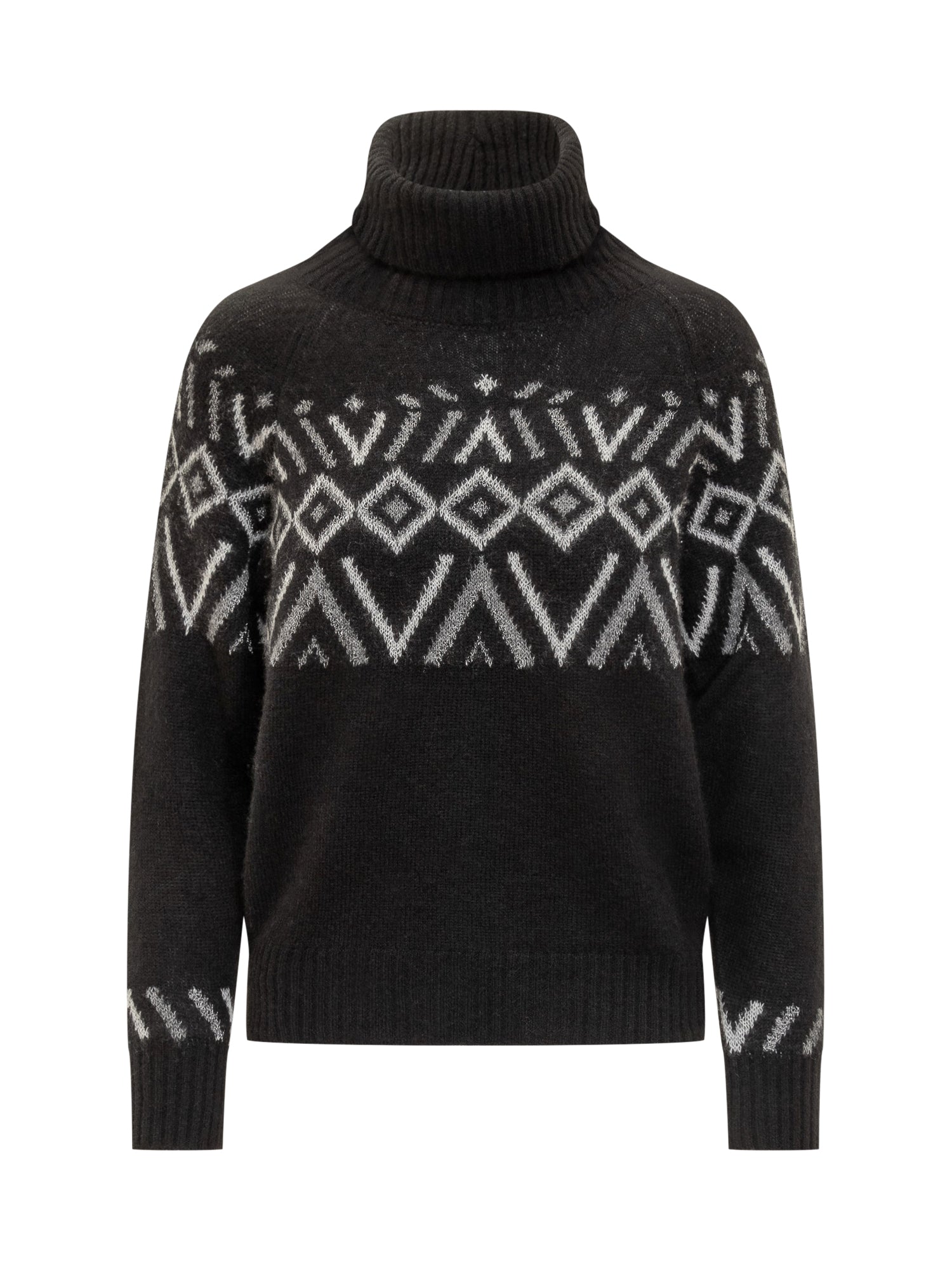 Maglione Puro Tatto in lana con motivo jacquard bianco su base nera. Collo alto e vestibilità comoda.