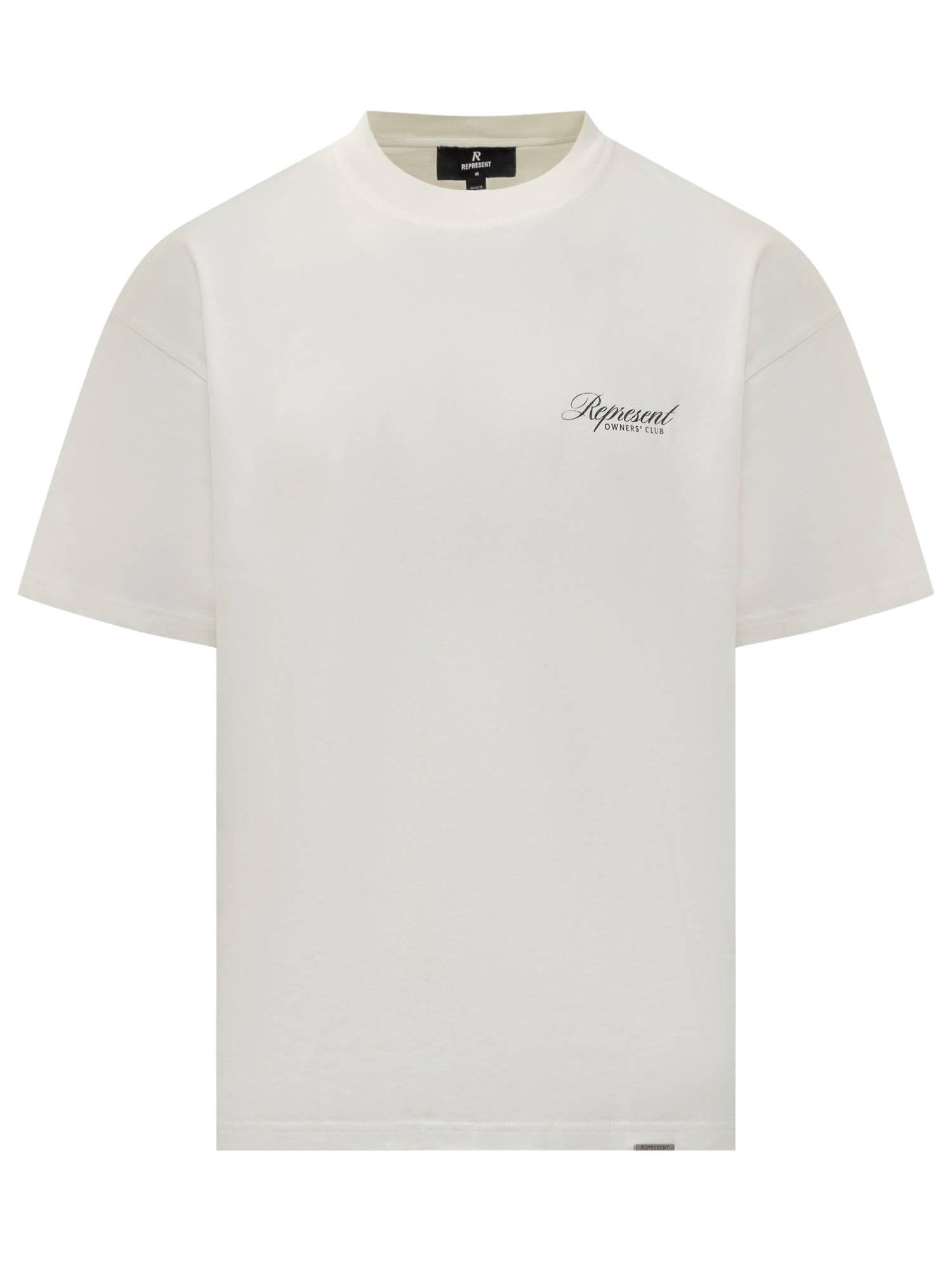 T-shirt Represent bianca in cotone con vestibilità comoda e logo ricamato sul petto.