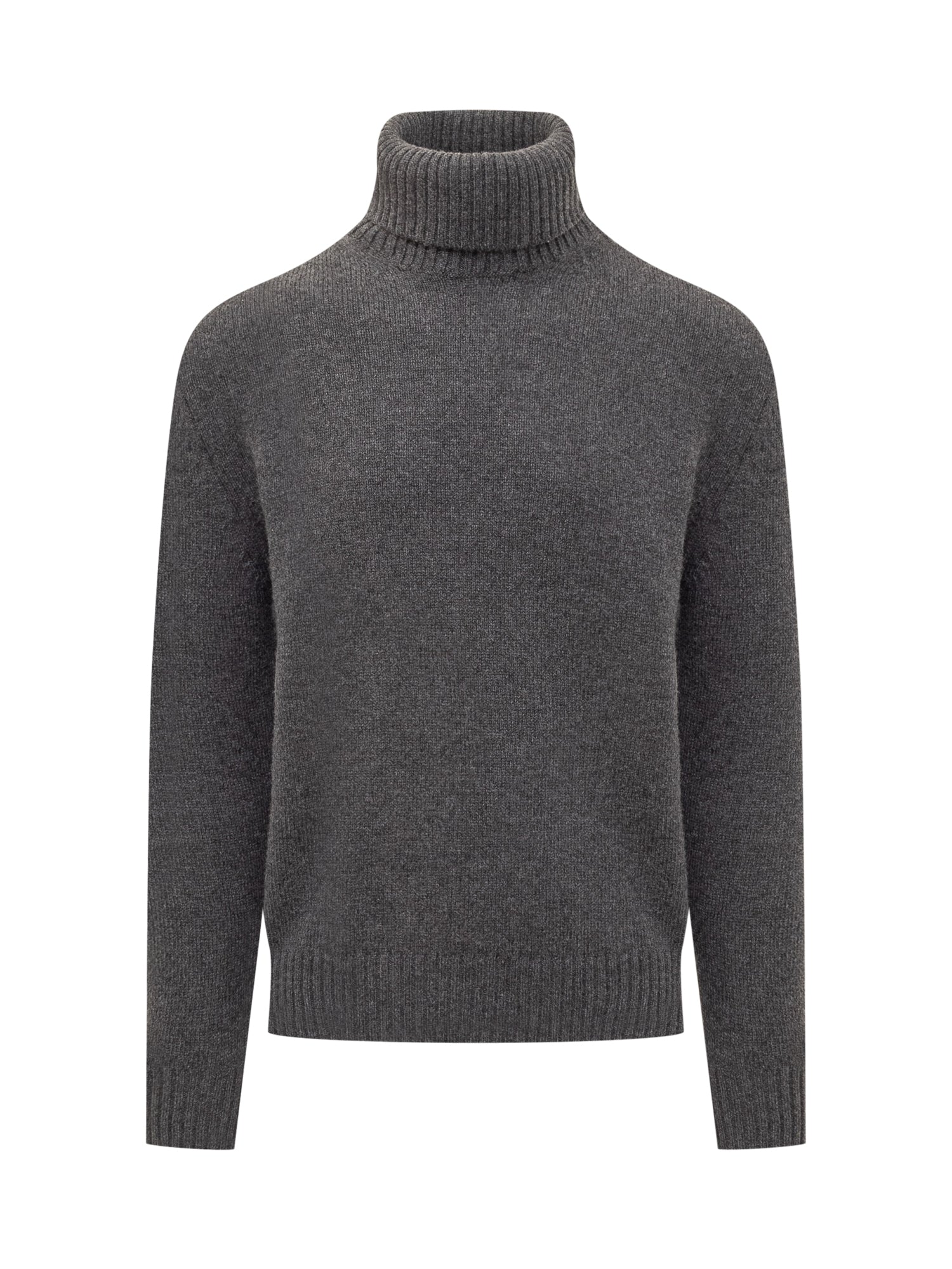 Maglia a maniche lunghe con collo alto. Orli a costine.