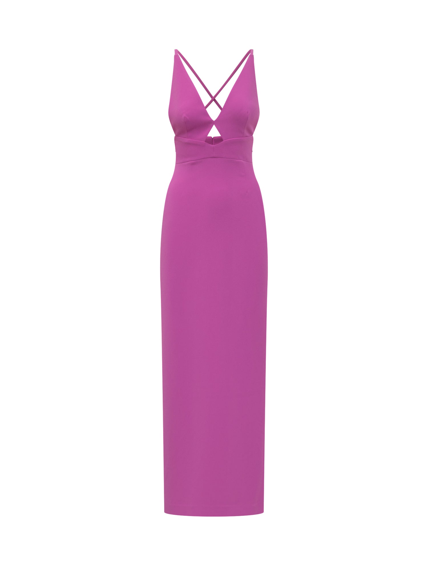Abito Lungo Fucsia Con Spalline Incrociate Solace London