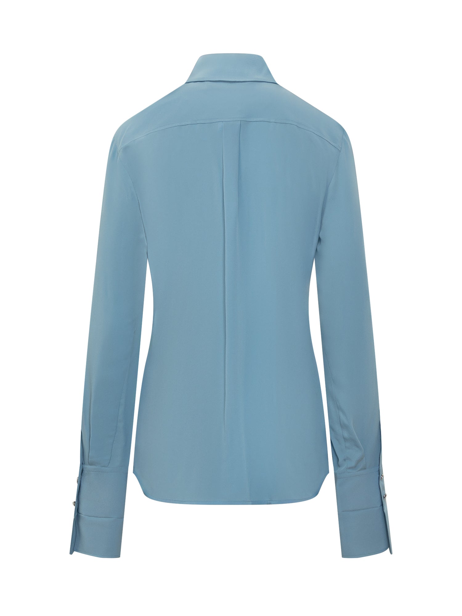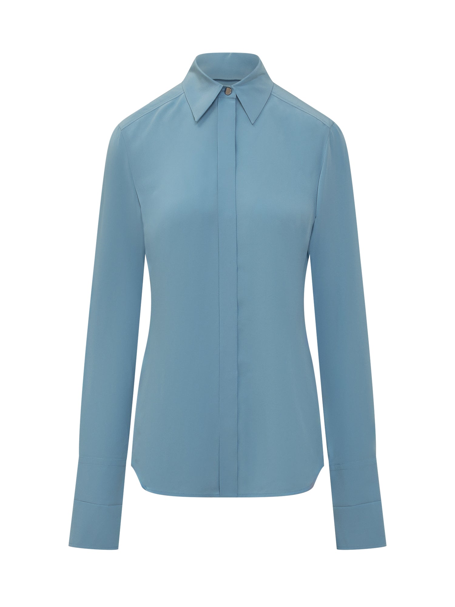 Camicia Sportmax in pura seta color azzurro. Modello classico con colletto a punta and maniche lunghe.