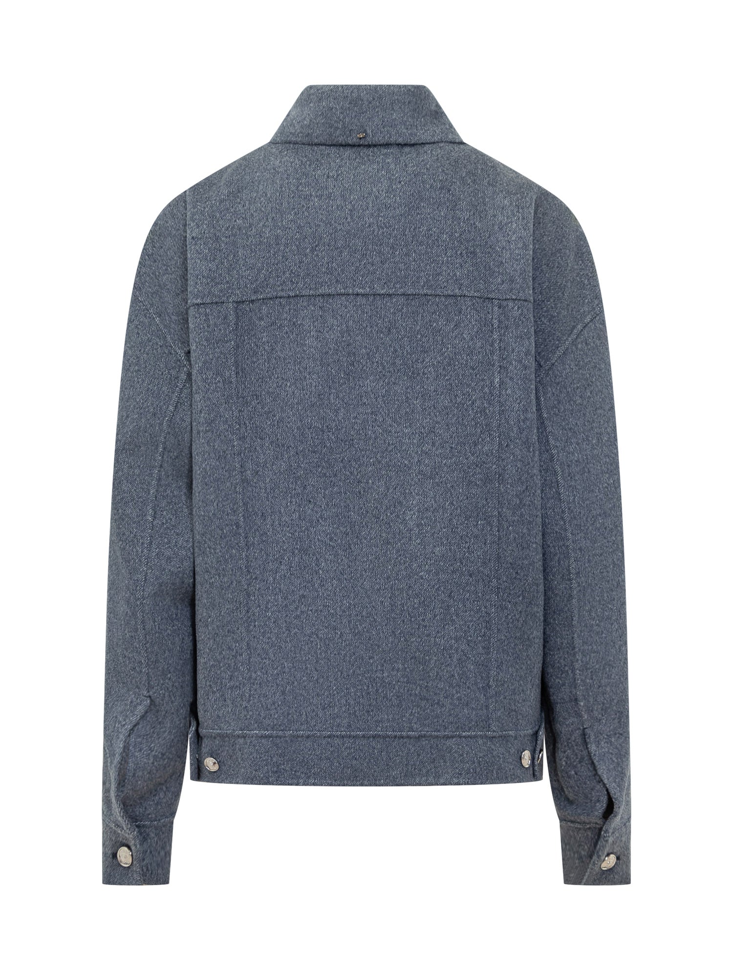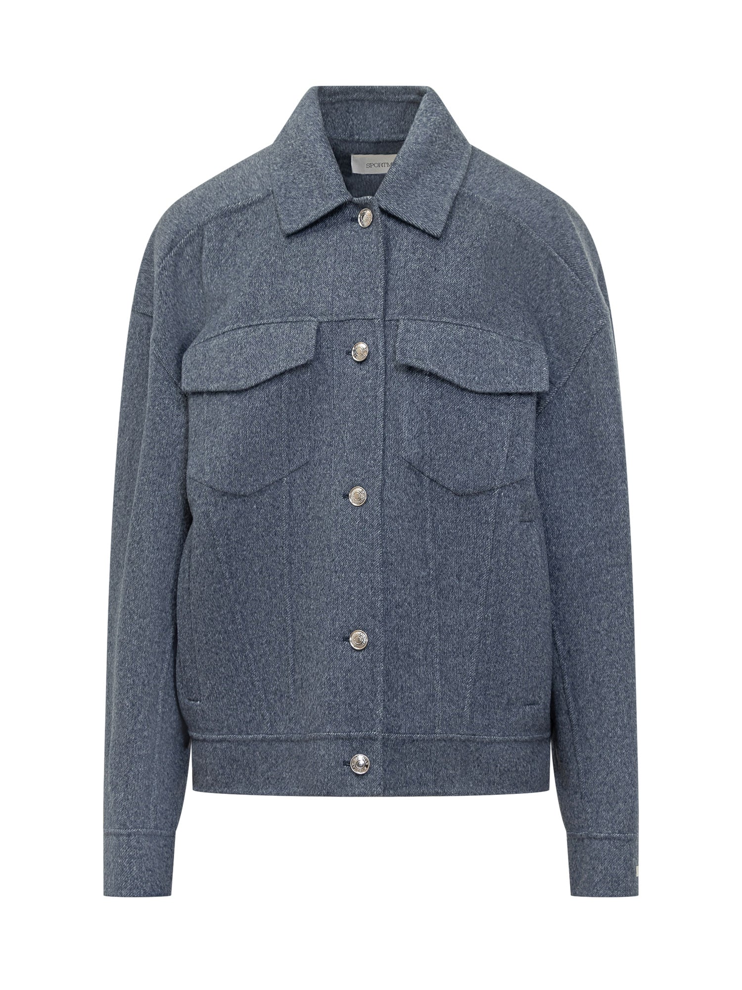 Giacca Sportmax in lana blu mélange, dallo stile ispirato al denim. Modello con colletto classico, tasche frontali con patta e chiusura con bottoni metallici.