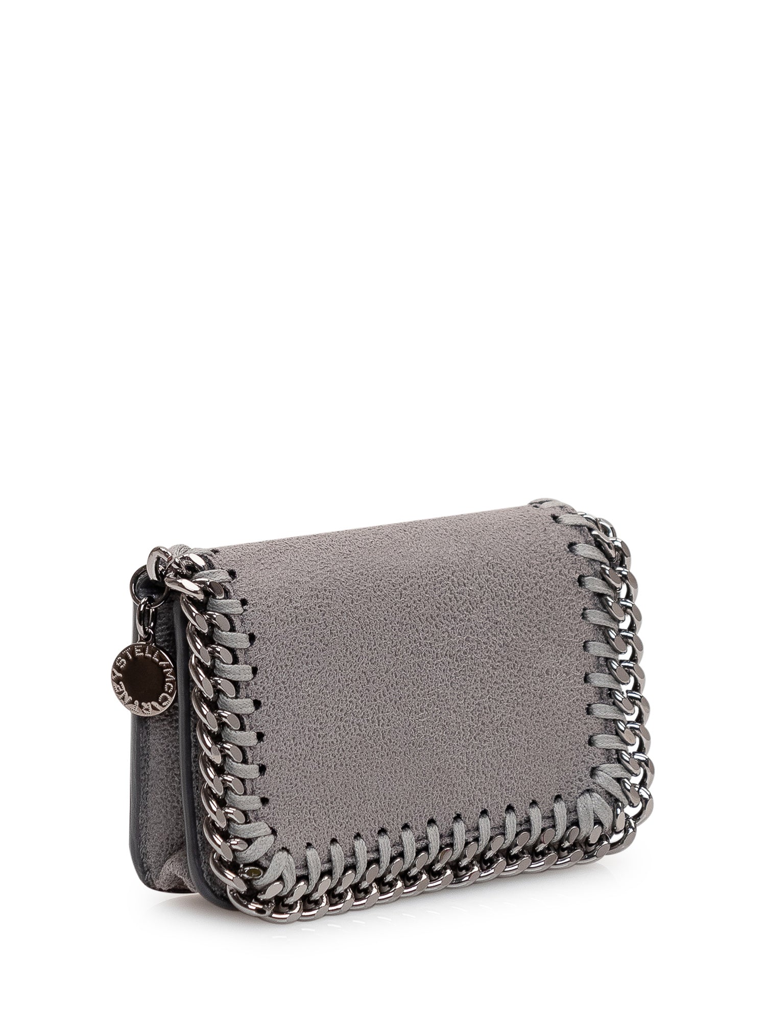 Porta carte compatto in materiale effetto scamosciato con iconica bordatura a catena e cuciture a vista.Dimensioni: 11x7x3