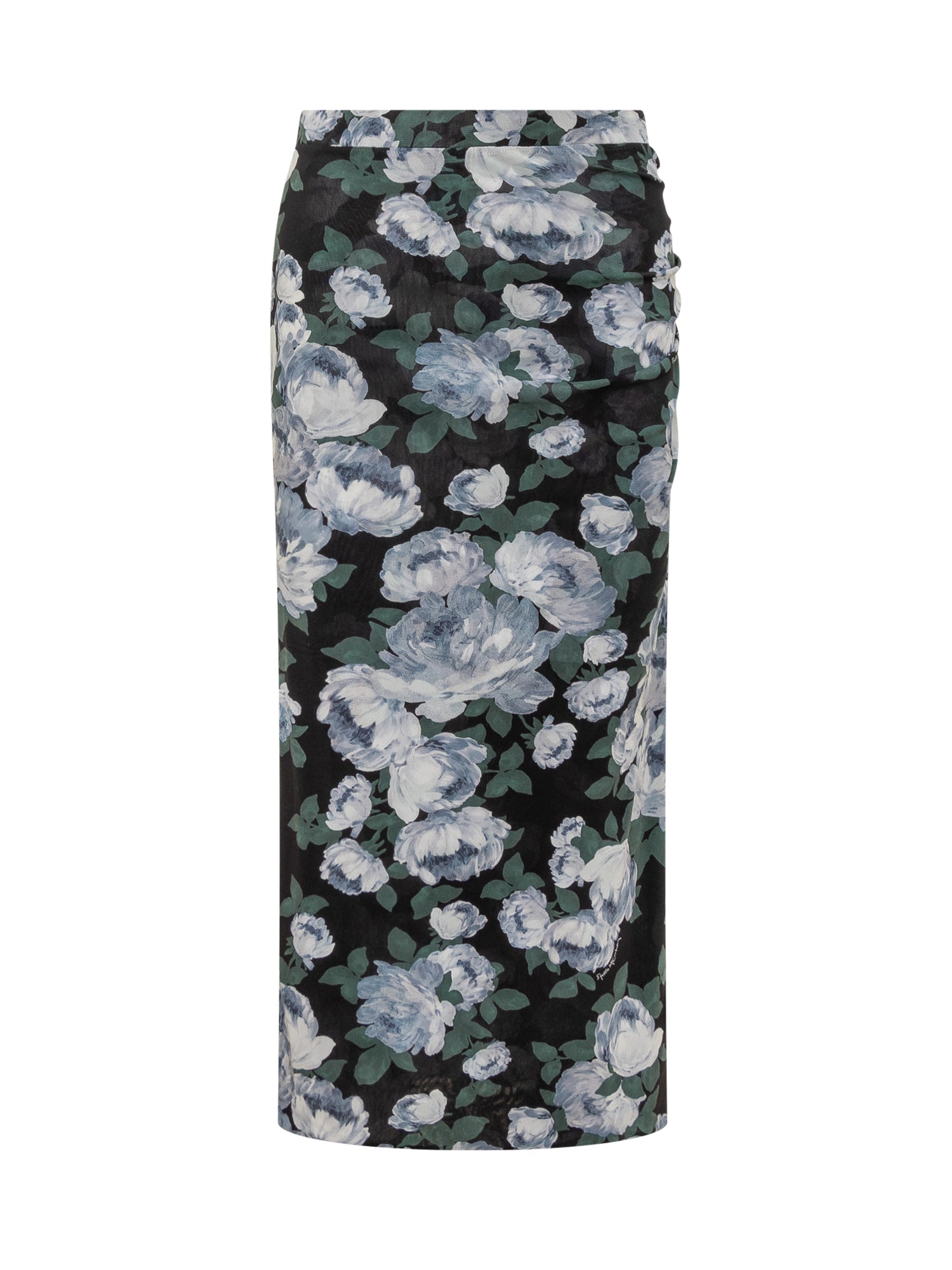 Gonna lunga in mesh con fantasia floreale e linea aderente che valorizza la silhouette. Leggera ed elegante, è ideale per look femminili e sofisticati.