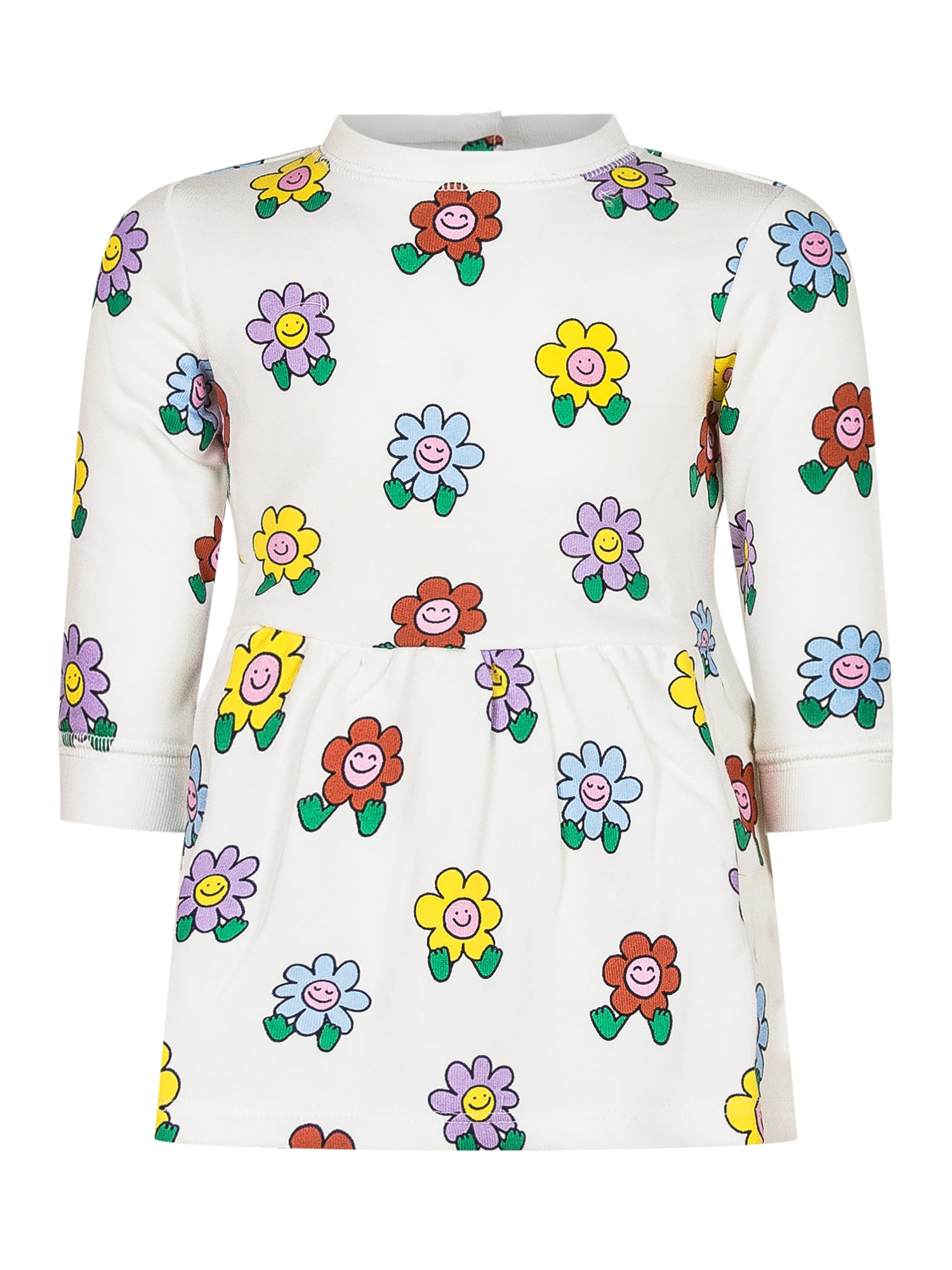 Abito bambina Stella McCartney in cotone biologico con stampa all-over di fiori sorridenti multicolore.