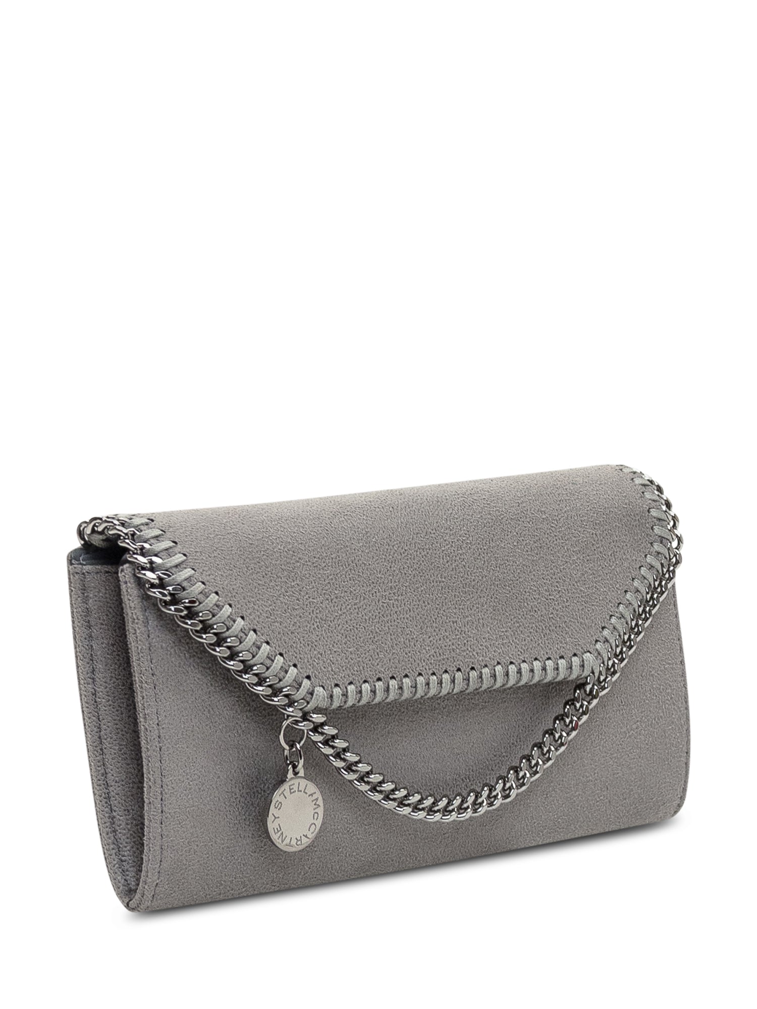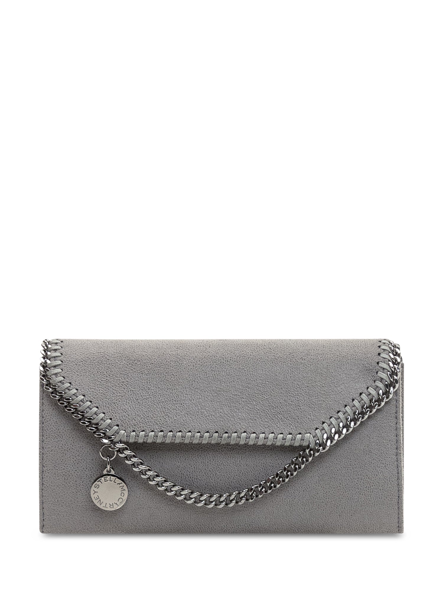 Portafoglio continental in materiale vegano con iconica catena a diamante e chiusura a patta. Interno organizzato con scomparti per carte e documenti.