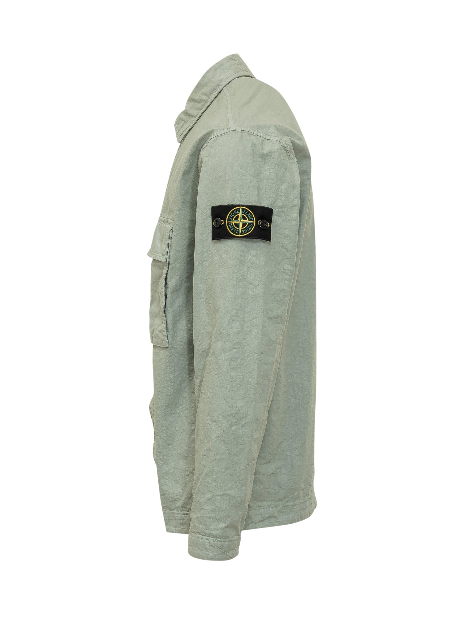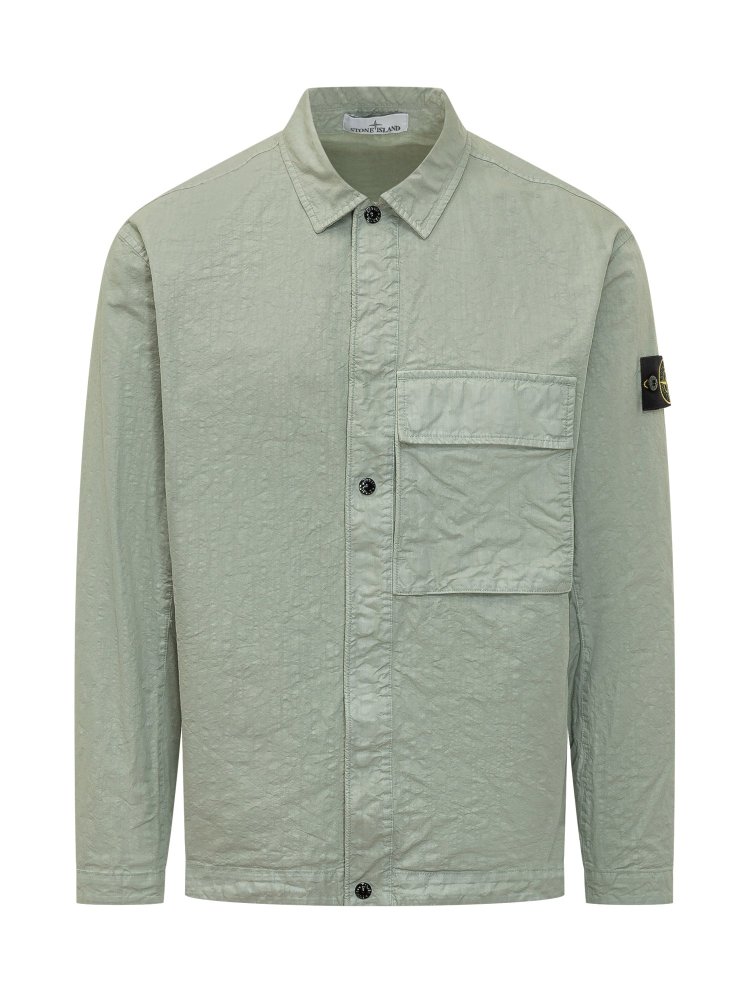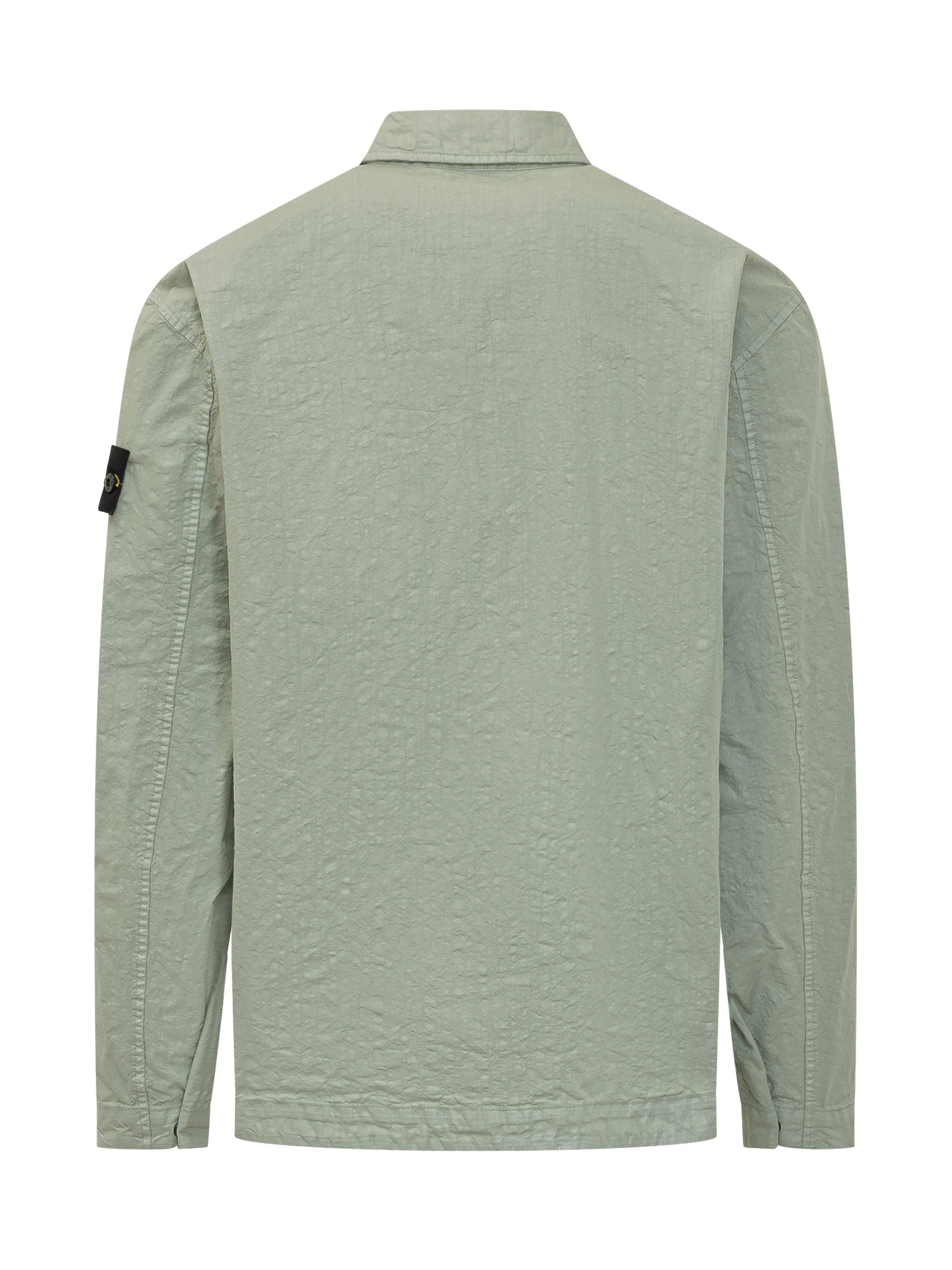 Camicia a maniche lunghe realizzata in tessuto tecnico leggero con texture stropicciata. Colletto classico, chiusura frontale con bottoni e tasca applicata sul petto. Vestibilità pulita.
