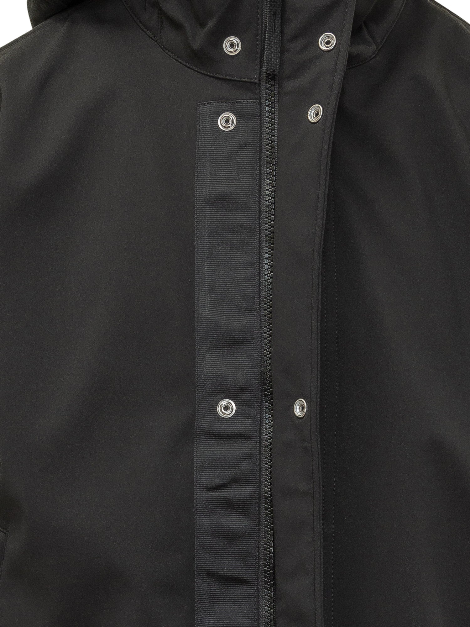 Giacca dal design pulito con cappuccio strutturato e chiusura frontale a bottoni. Realizzata con costruzione compatta, presenta polsini e fondo rifiniti per una vestibilità equilibrata. Ideale per look urbani essenziali e contemporanei.