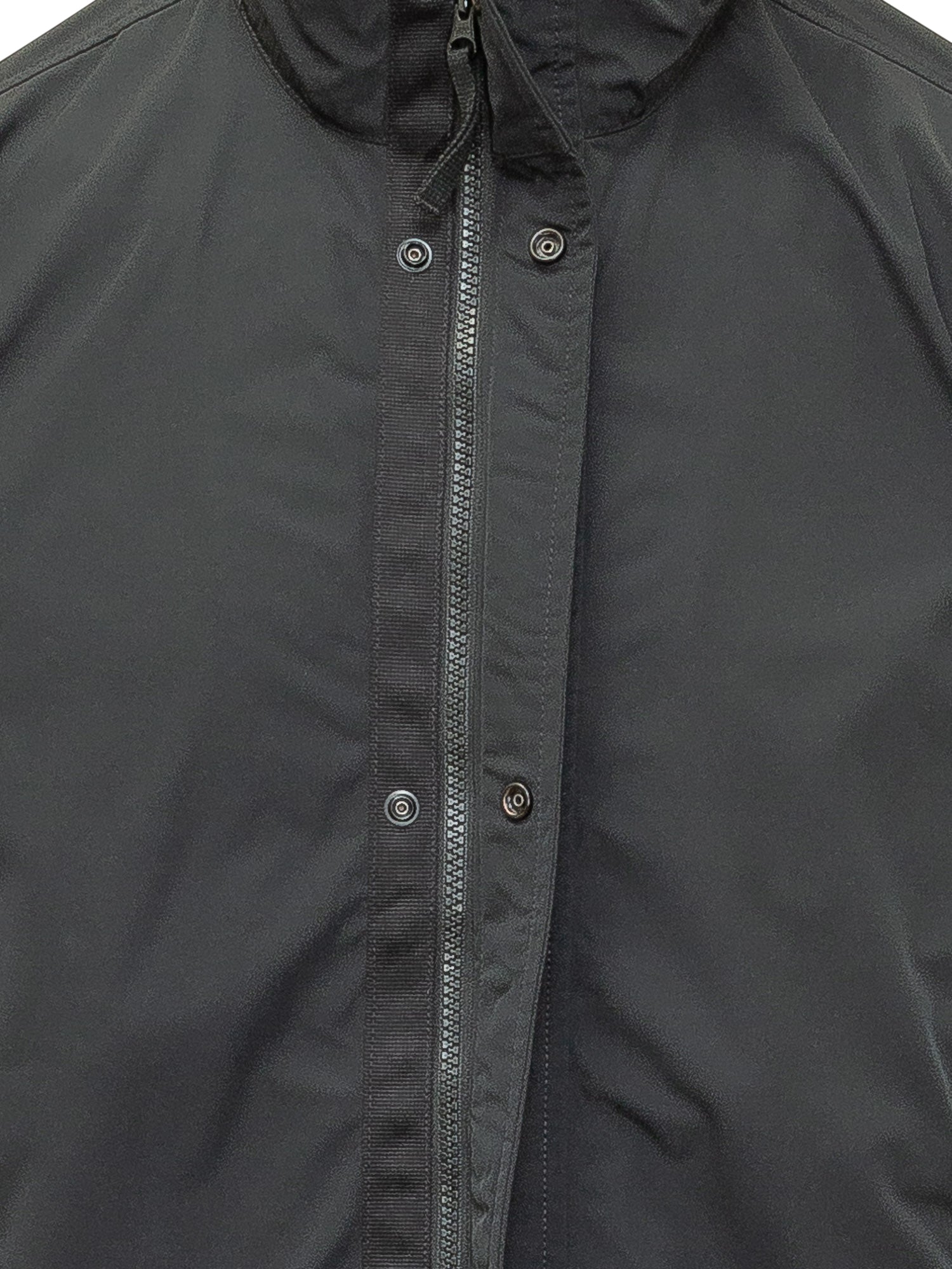 Giacca dalla linea pulita con collo alto strutturato e chiusura frontale nascosta. Realizzata con costruzione funzionale, presenta maniche con polsini elasticizzati per maggiore comfort. Ideale per un utilizzo quotidiano e urbano.