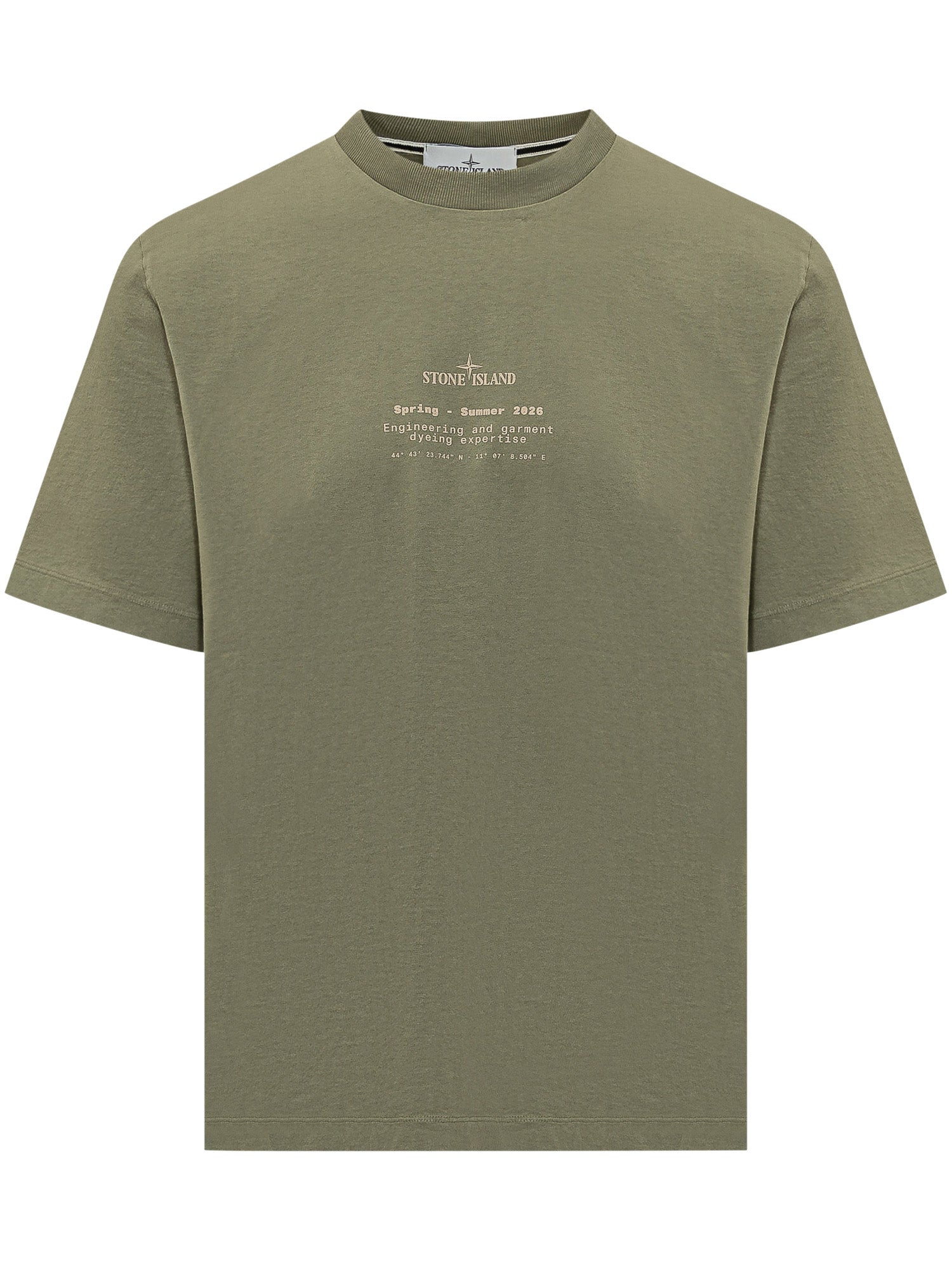 T-shirt a maniche corte in cotone con vestibilità regolare. Girocollo rifinito e costruzione pulita. Stampa testuale a contrasto sul petto che richiama ispirazioni tecniche e contemporanee, ideale per look casual e urbani.