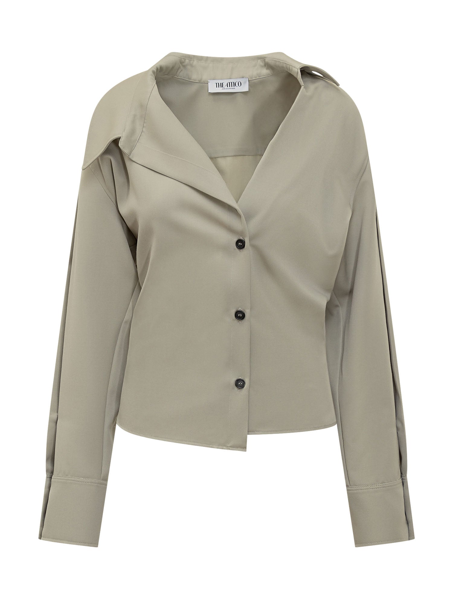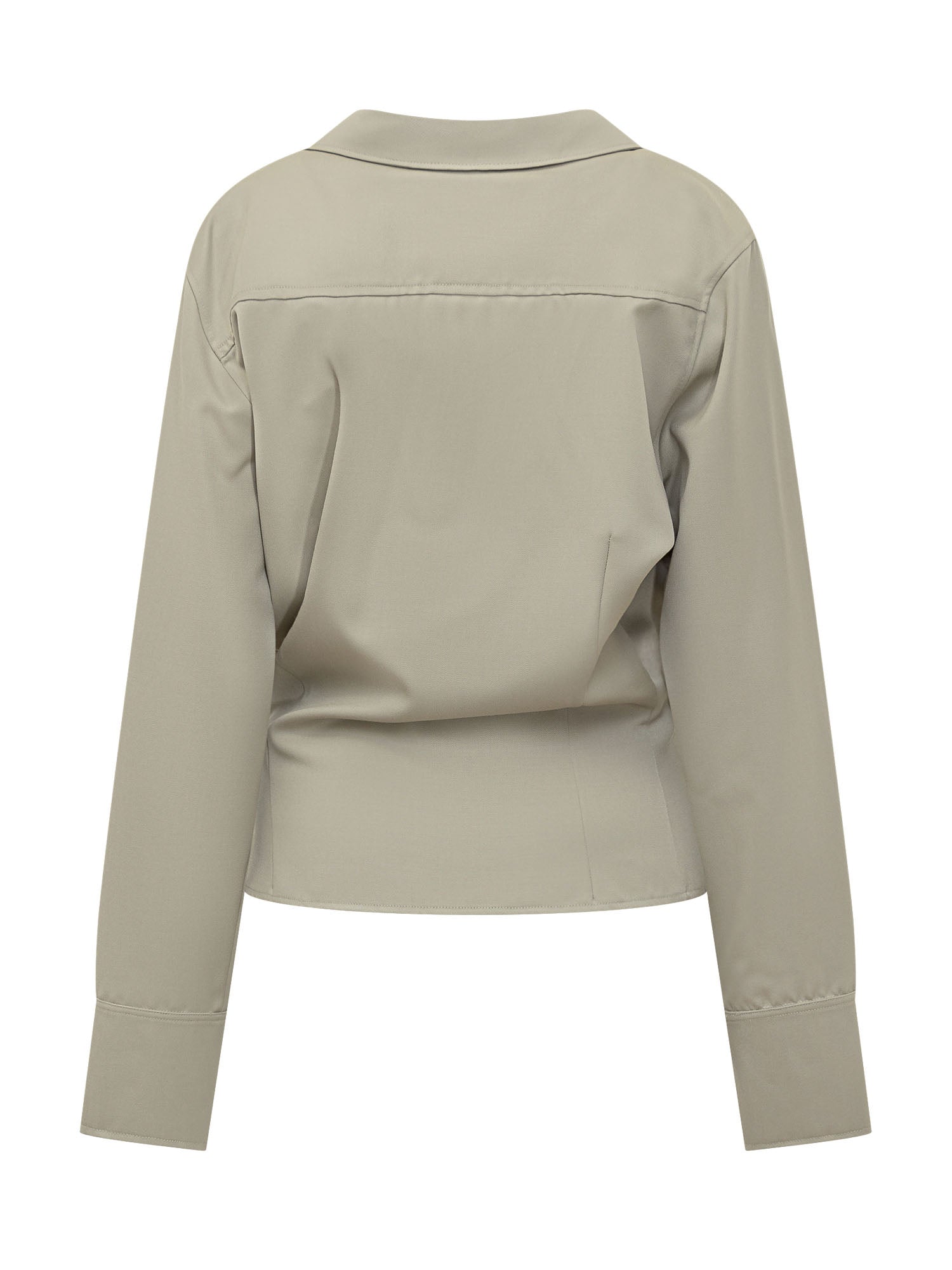 Camicia a maniche lunghe con collo aperto e linea leggermente svasata. La chiusura a bottoni crea un look moderno e versatile.