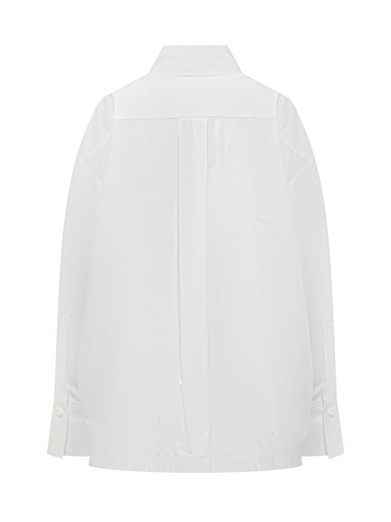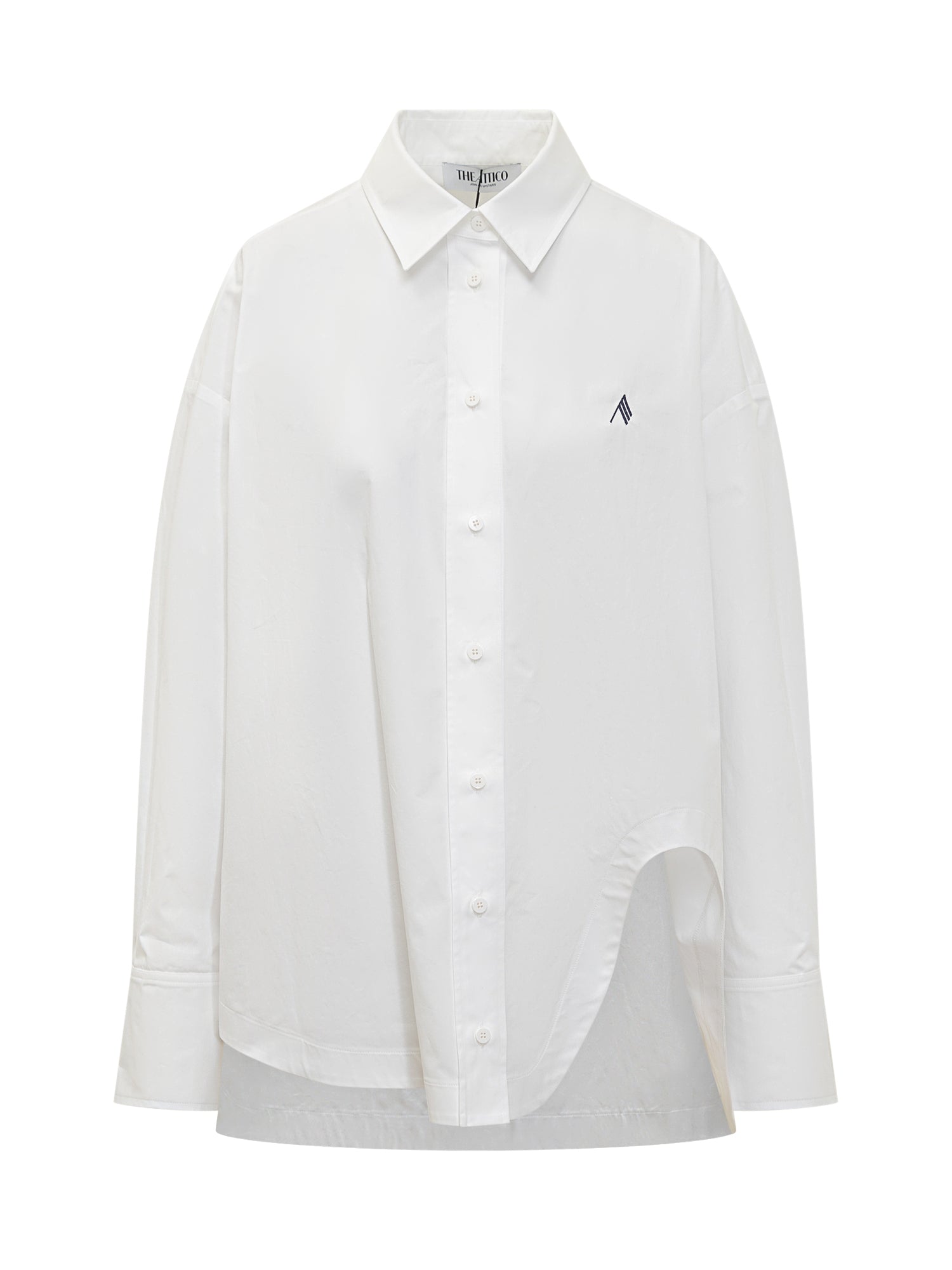 Camicia oversize con linea morbida, colletto classico e chiusura a bottoni. L orlo asimmetrico aggiunge un tocco moderno, ideale per look raffinati e contemporanei.
