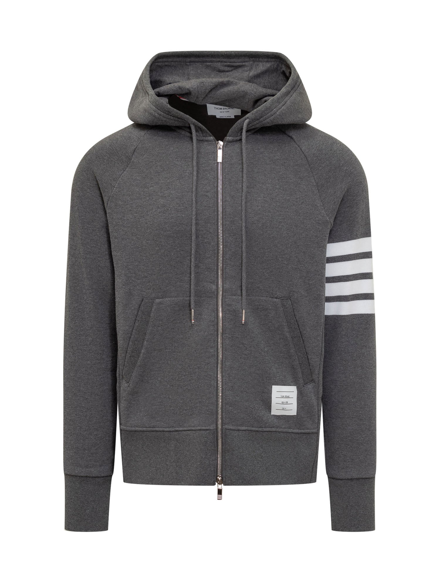 Felpa in cotone con cappuccio regolabile, zip frontale e tasca a marsupio.