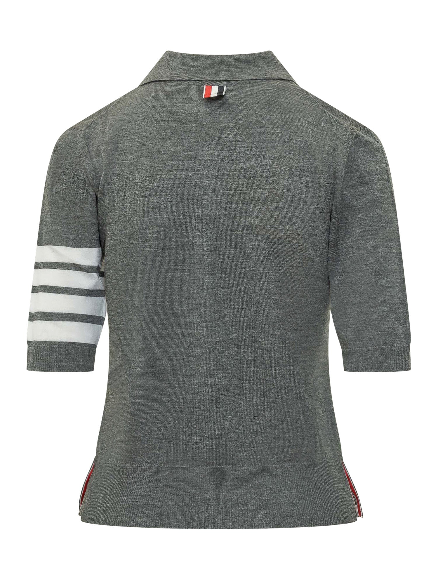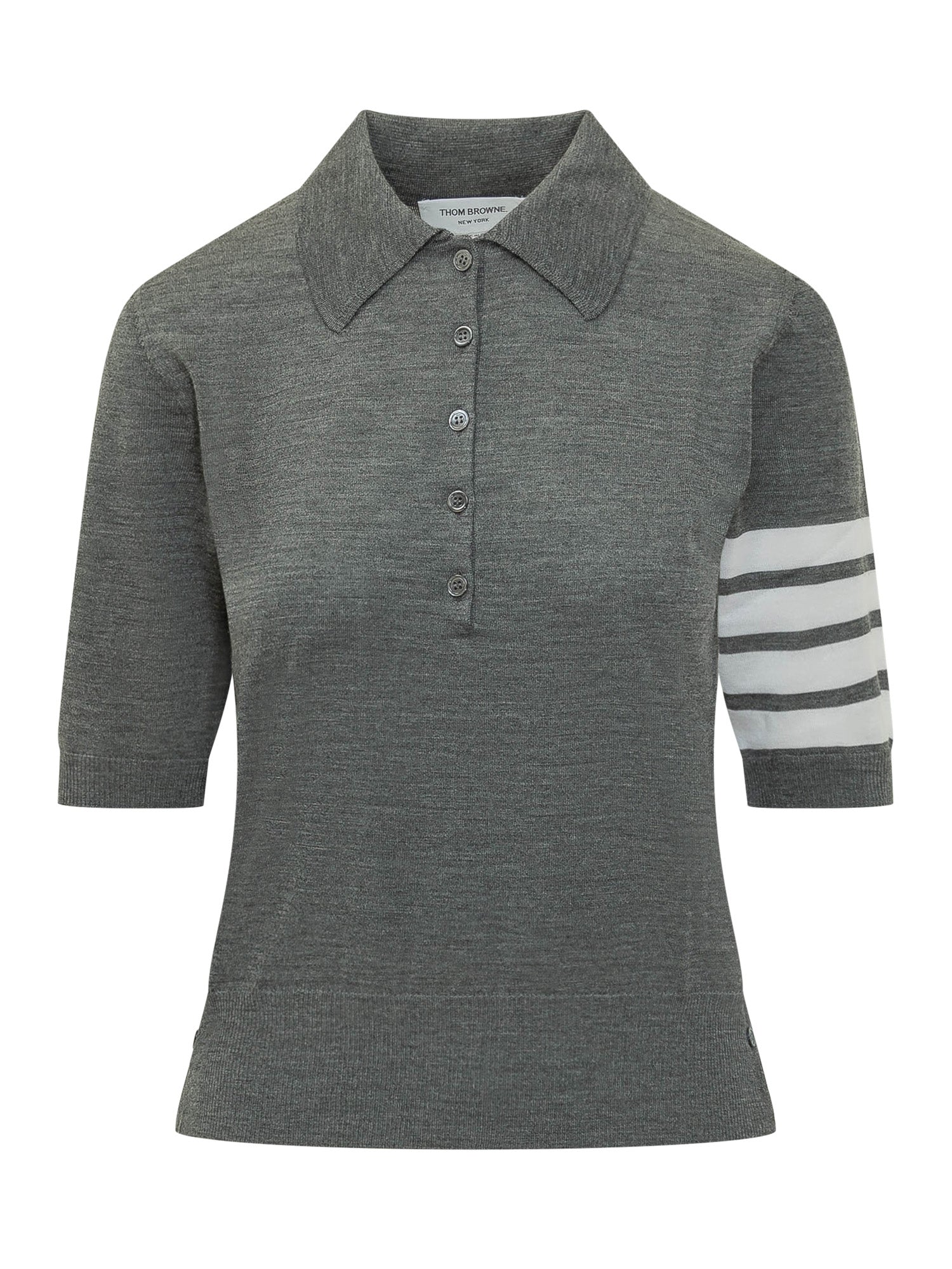 Polo a manica corta in maglia fine con colletto classico e abbottonatura frontale.