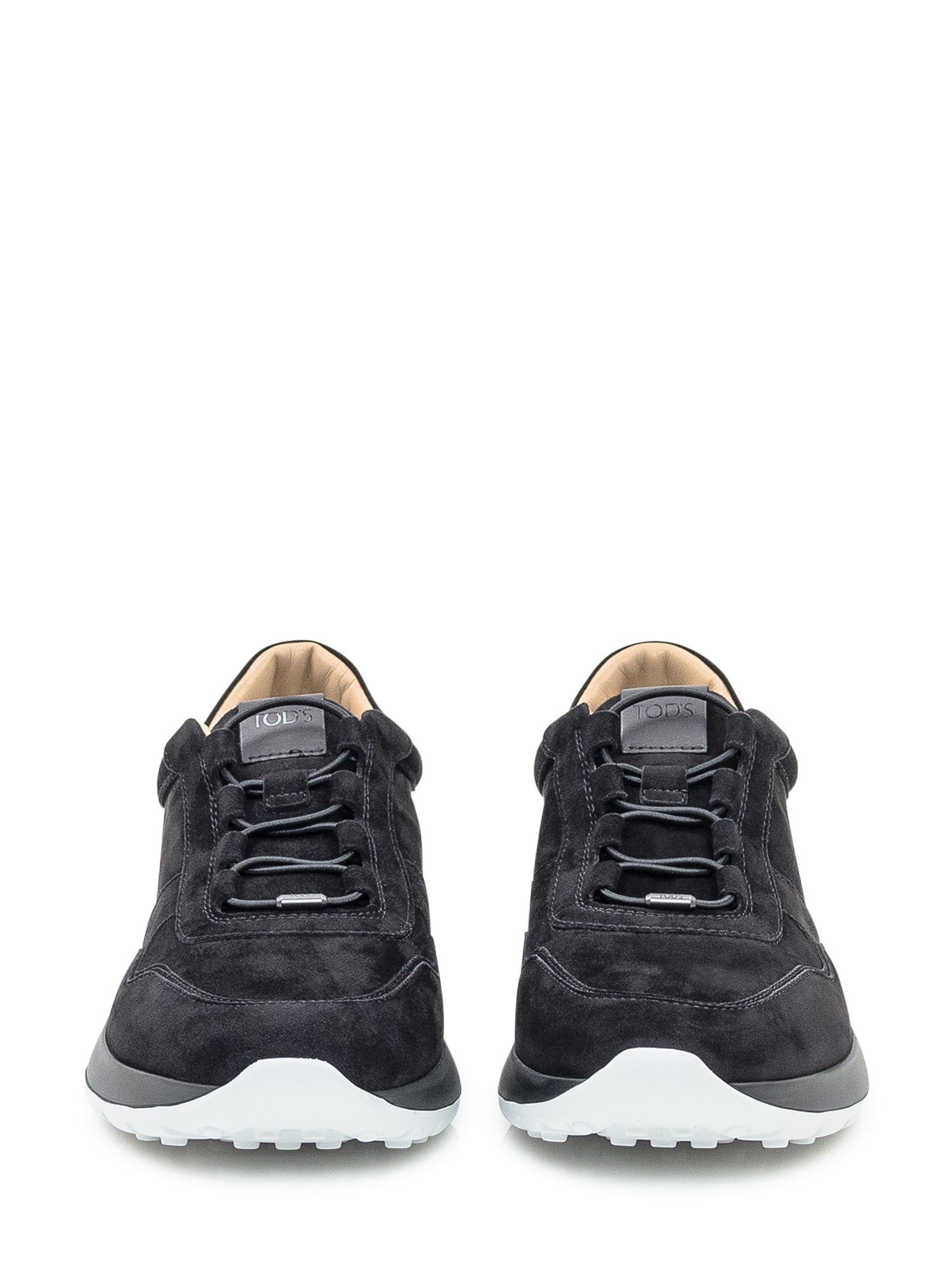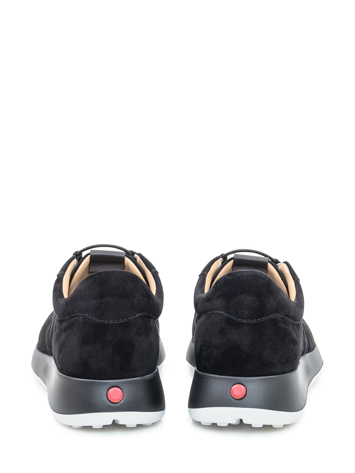 Sneakers Tod s Red Dot in suede nero con suola in gomma bianca e dettagli tono su tono. Comfort e stile si uniscono in un design essenziale e raffinato.