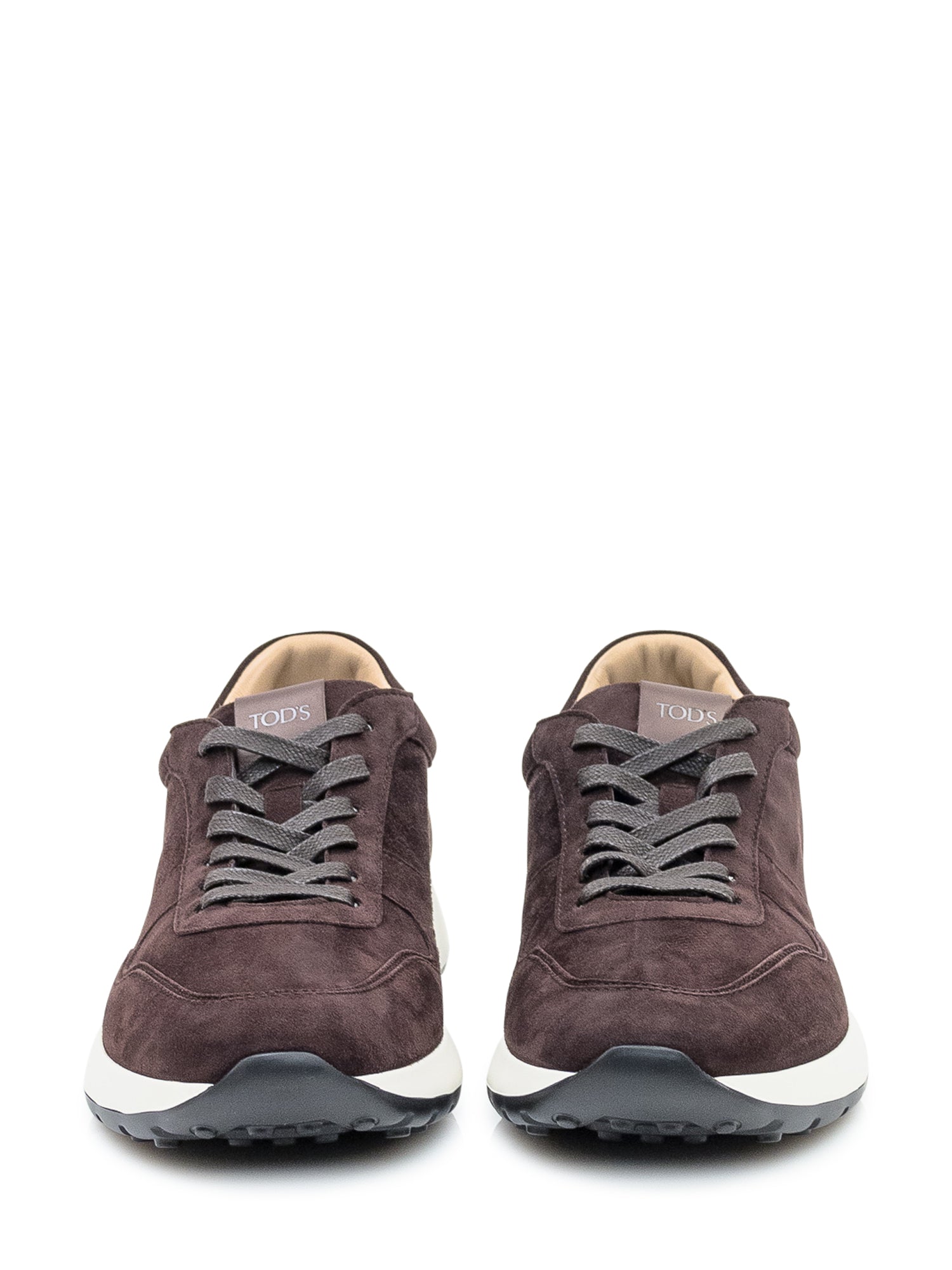 Sneakers Tod s Sportivo 79K in suede marrone con suola in gomma bianca. Design elegante e sportivo, perfette per uno stile casual raffinato con il massimo comfort in ogni occasione.
