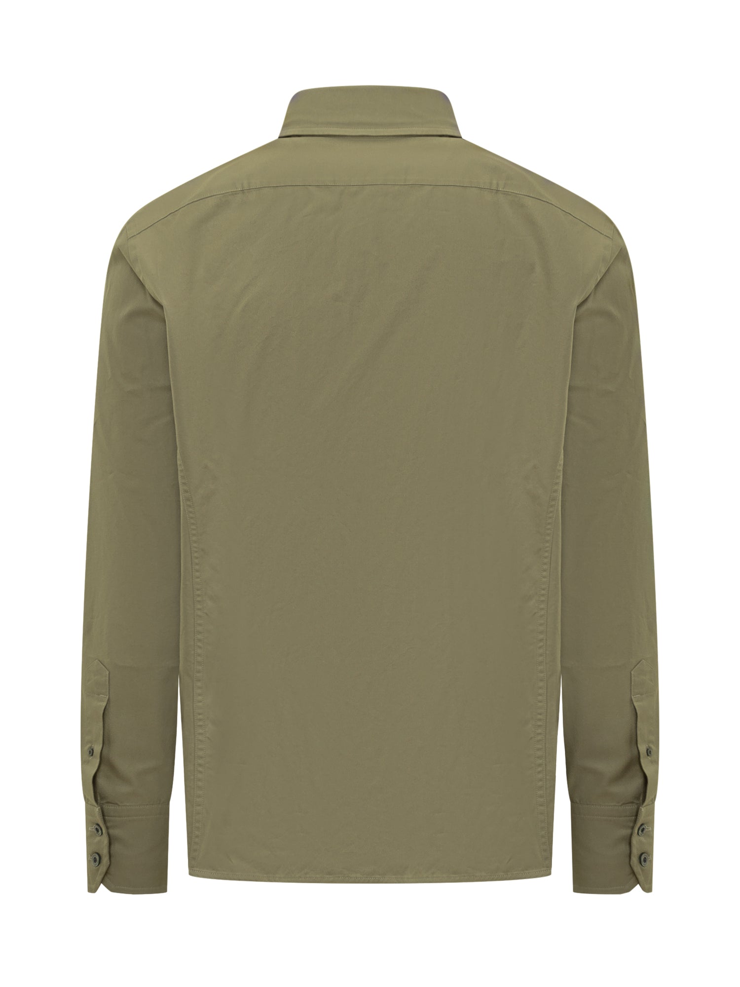 Camicia Tom Ford verde militare in cotone, con tasche frontali e chiusura a bottoni.