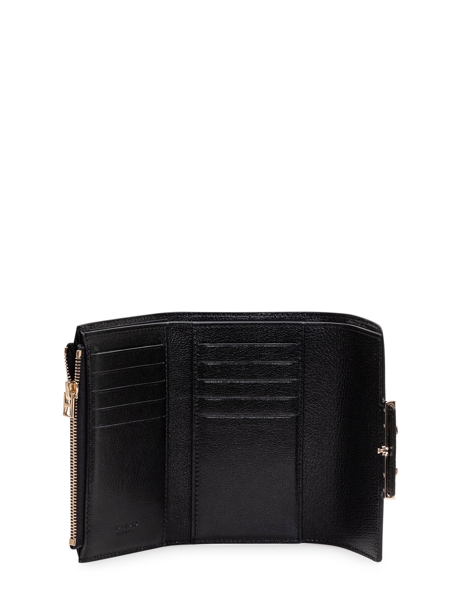 Portafoglio compatto in pelle a grana con chiusura a patta.Dimensioni: 14,5x9x1