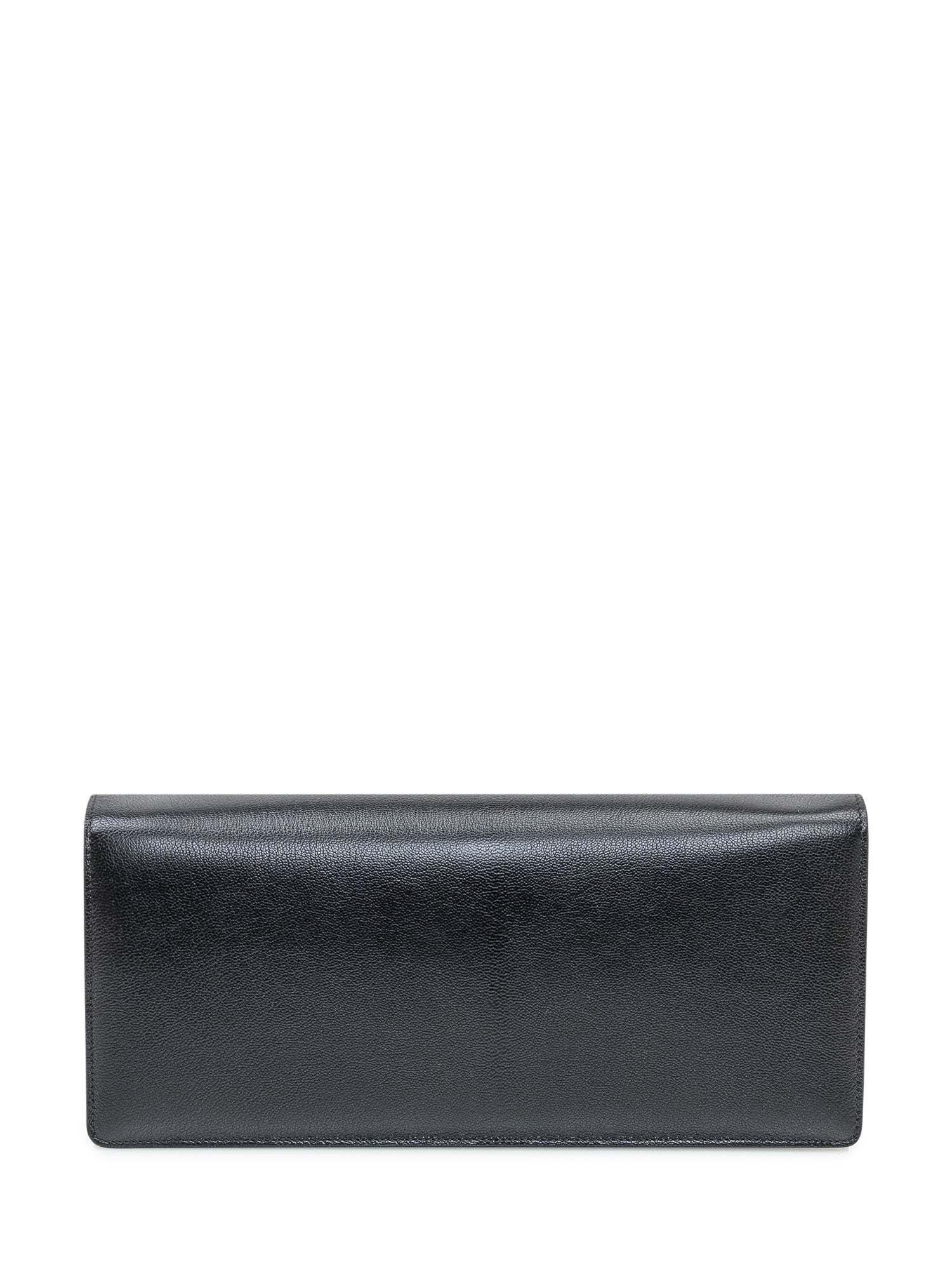 Clutch Tom Ford in pelle liscia nera con elegante chiusura metallica.