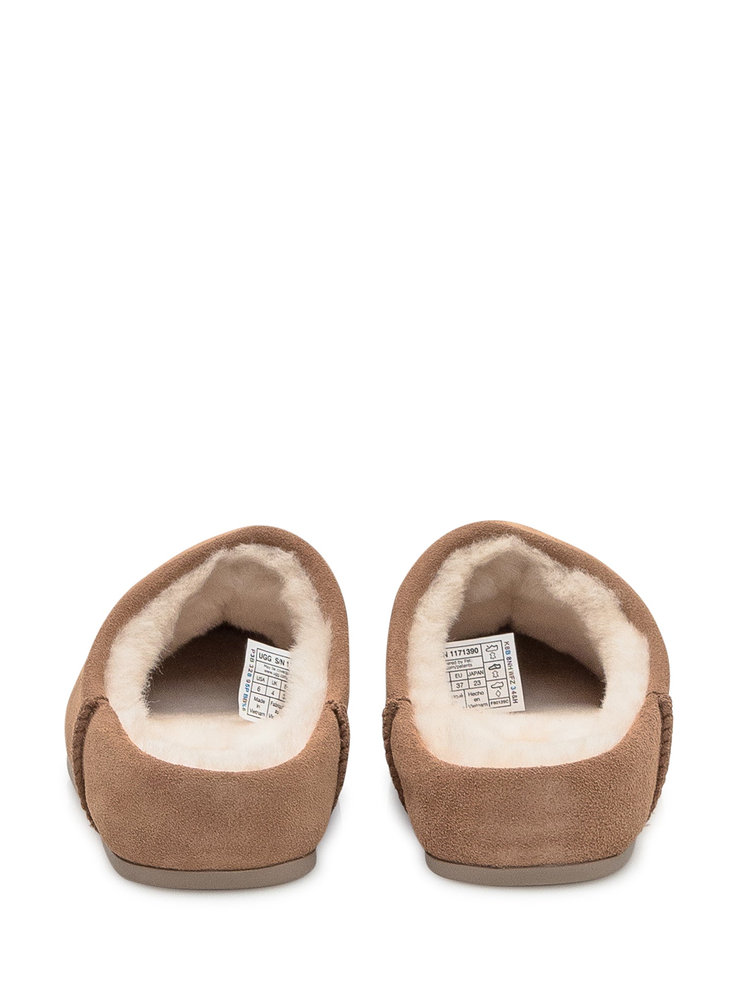 Ciabatte UGG Elea Slip On in morbido suede color cammello con fodera in pelliccia di montone.