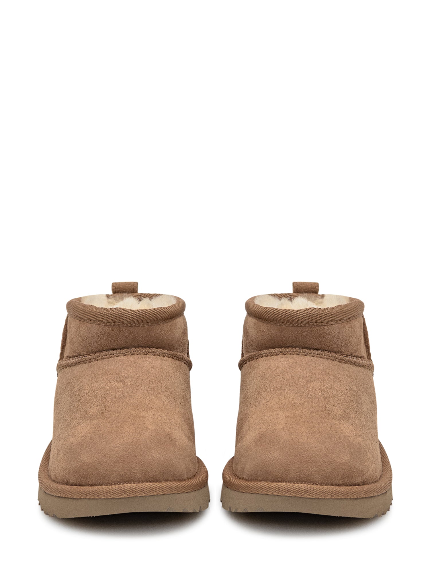 Stivaletto iconico dal taglio ultra corto in morbida pelle scamosciata.