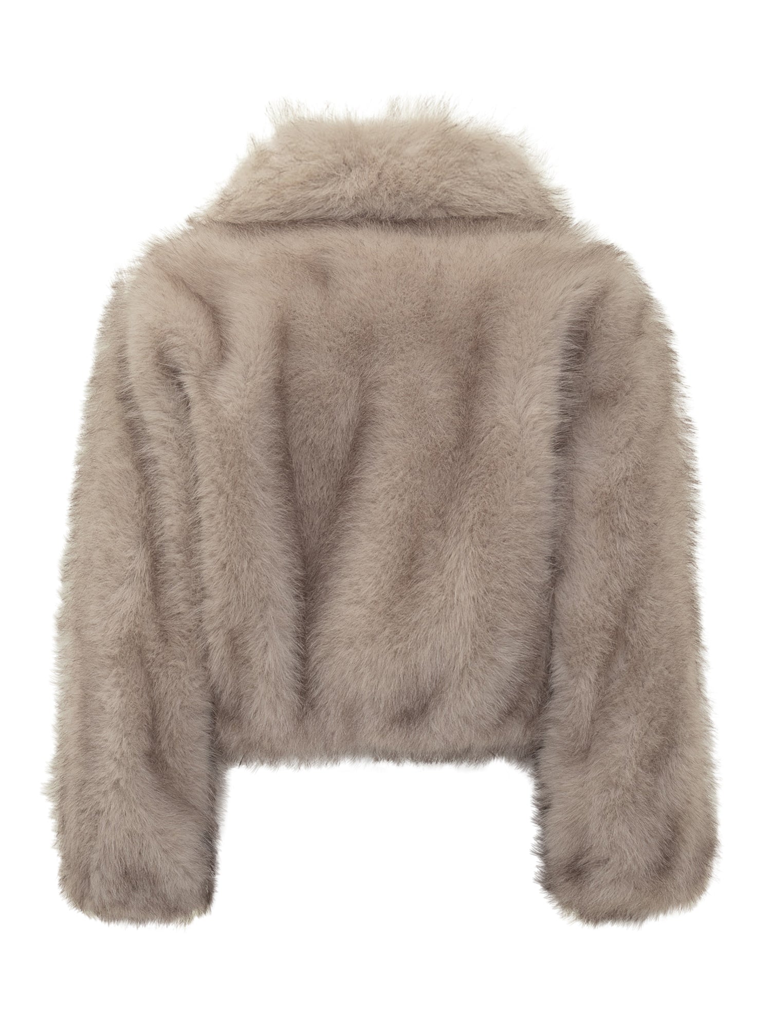 Giacca corta Valentini in pelliccia sintetica beige, con zip frontale e collo ampio, chiusura con la zip, elastico su orlo e polsi.