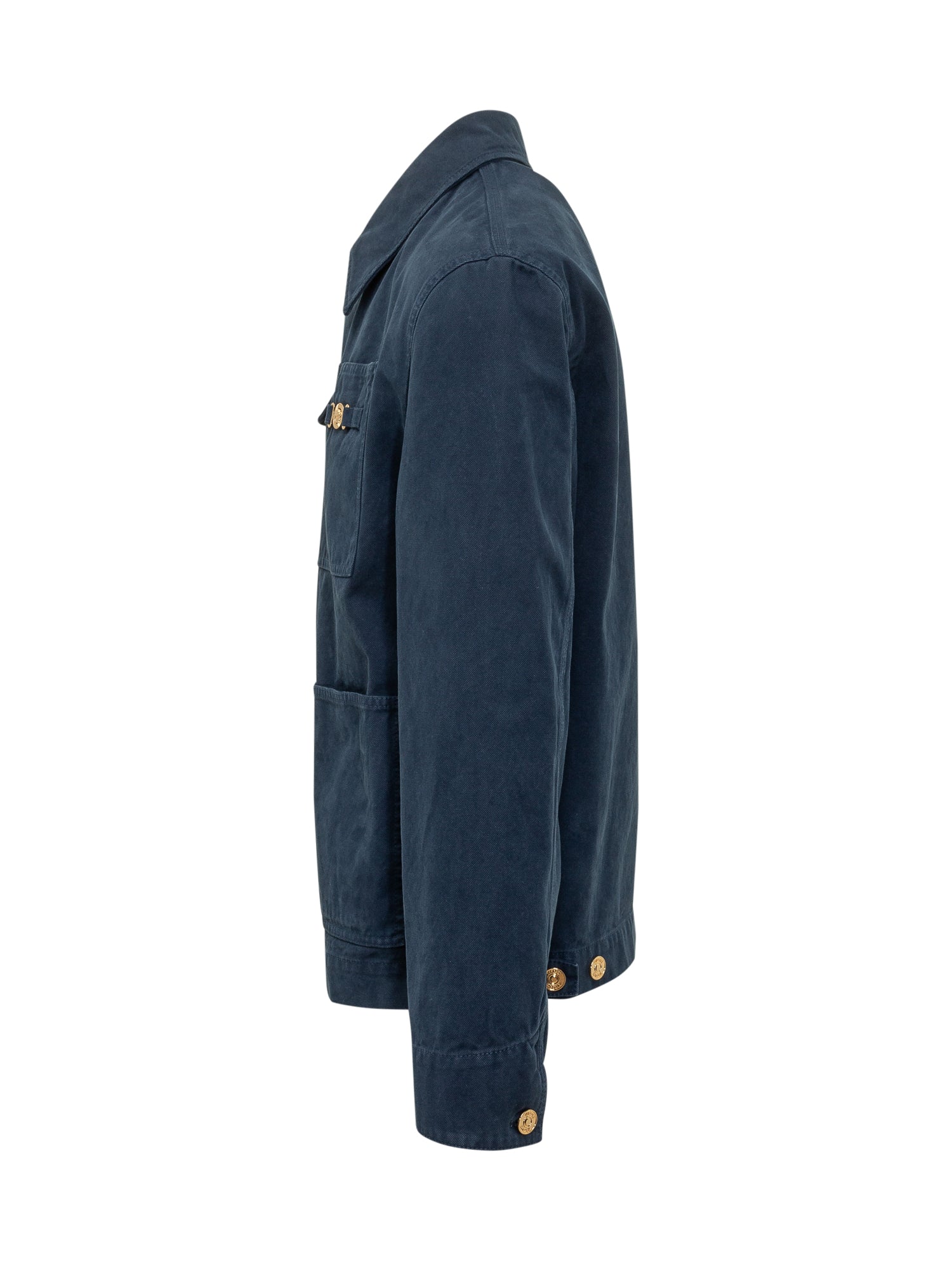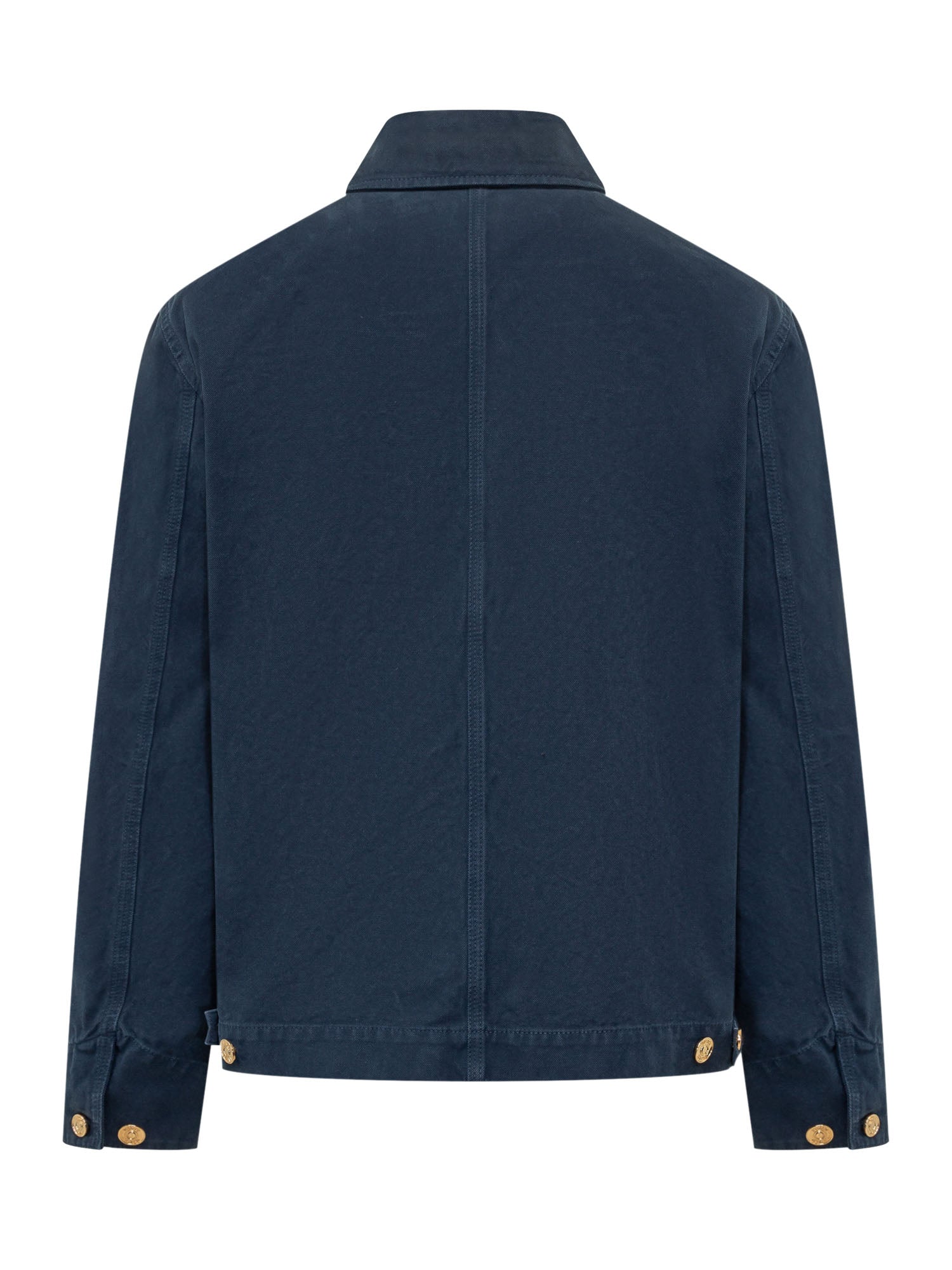 Giacca utility dal design essenziale con colletto classico, chiusura frontale con bottoni e tasche applicate. Linea strutturata e stile funzionale.