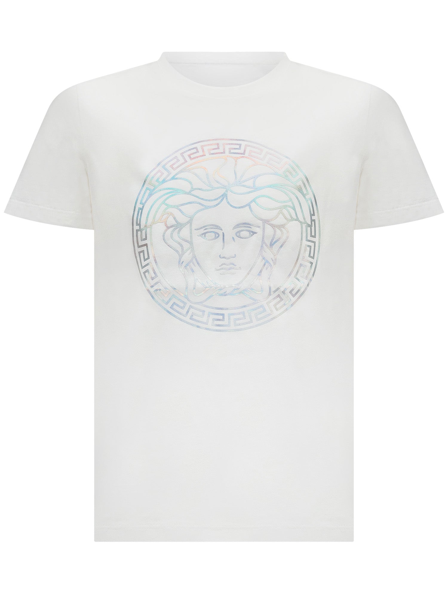 Tshirt bianca in cotone. Girocollo. Logo centrale olografico.
