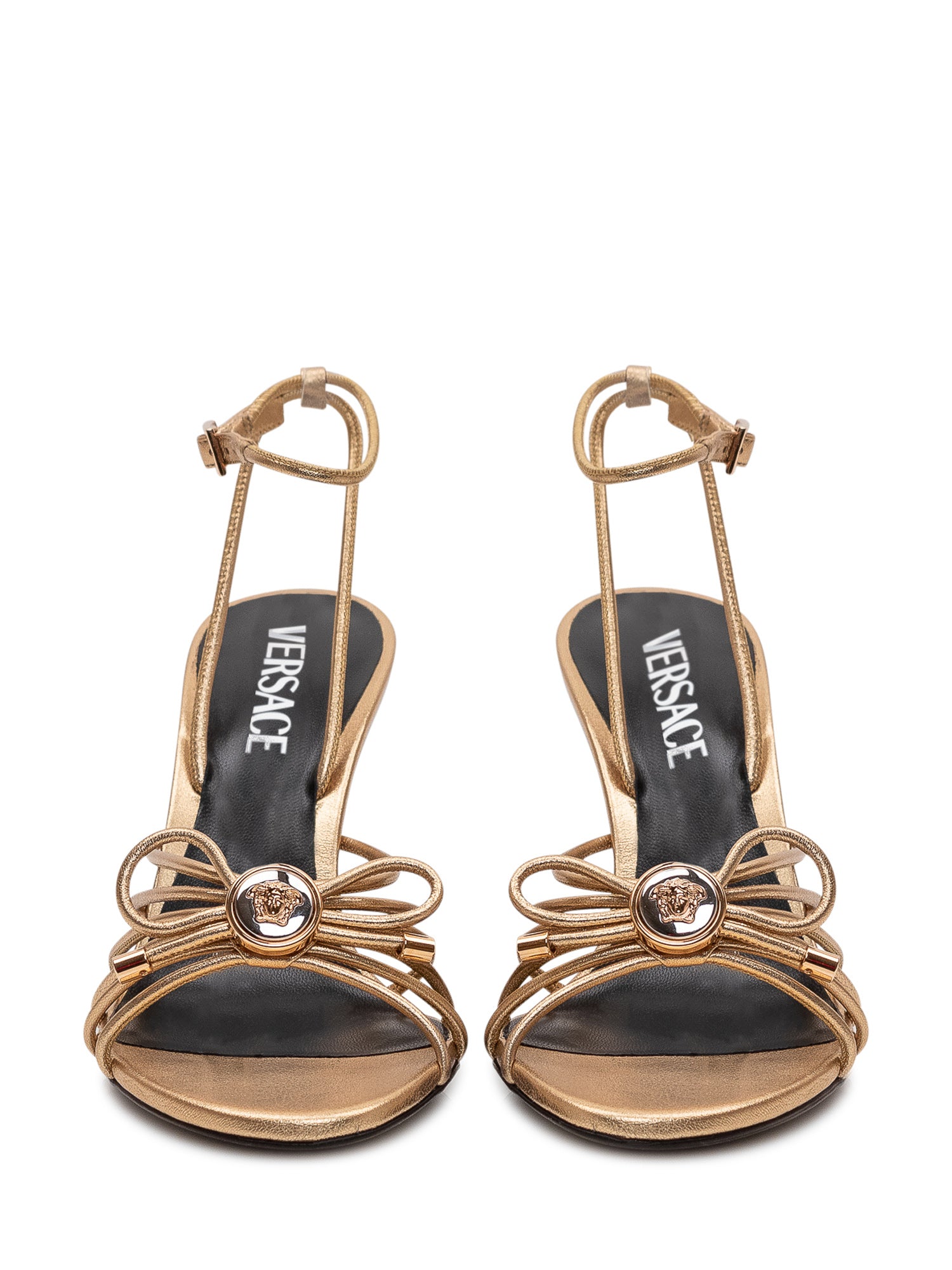 Sandalo con tacco medio caratterizzato da sottili listini incrociati e cinturino regolabile alla caviglia.Altezza tacco: 10