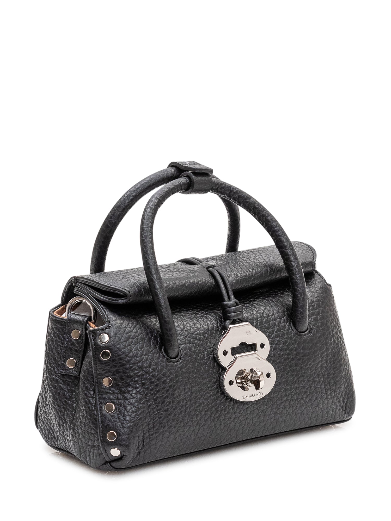 Borsa a mano compatta in pelle martellata con manici superiori e chiusura frontale iconica.Dimensioni: 22x13x10