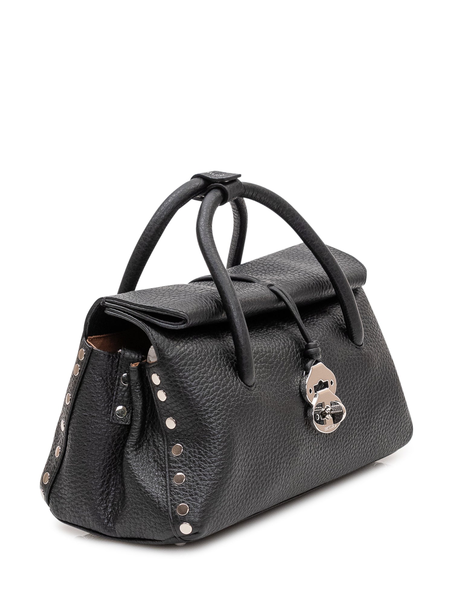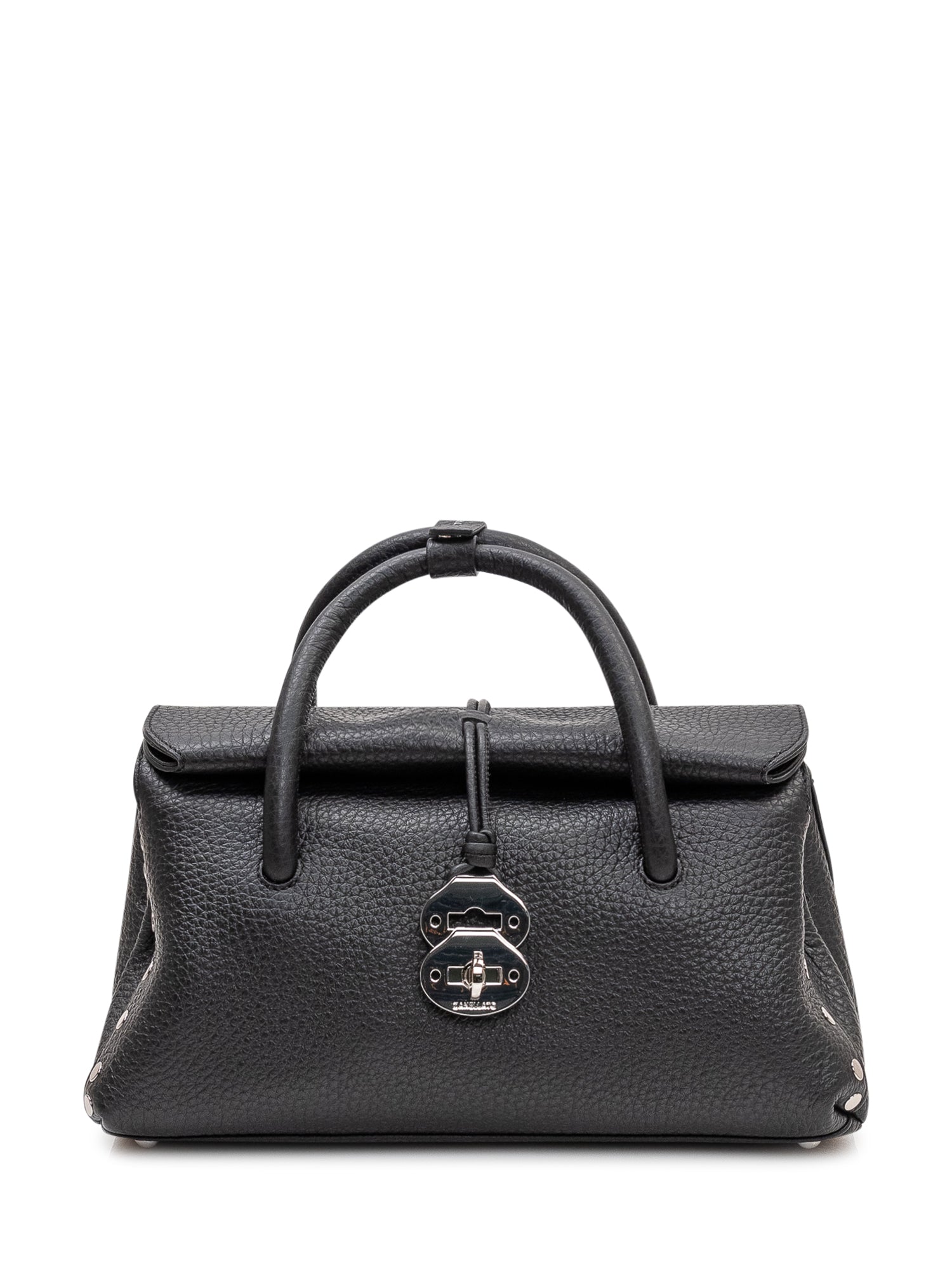 Borsa a mano compatta in pelle martellata con manici superiori e chiusura frontale iconica.Dimensioni: 33x17x16